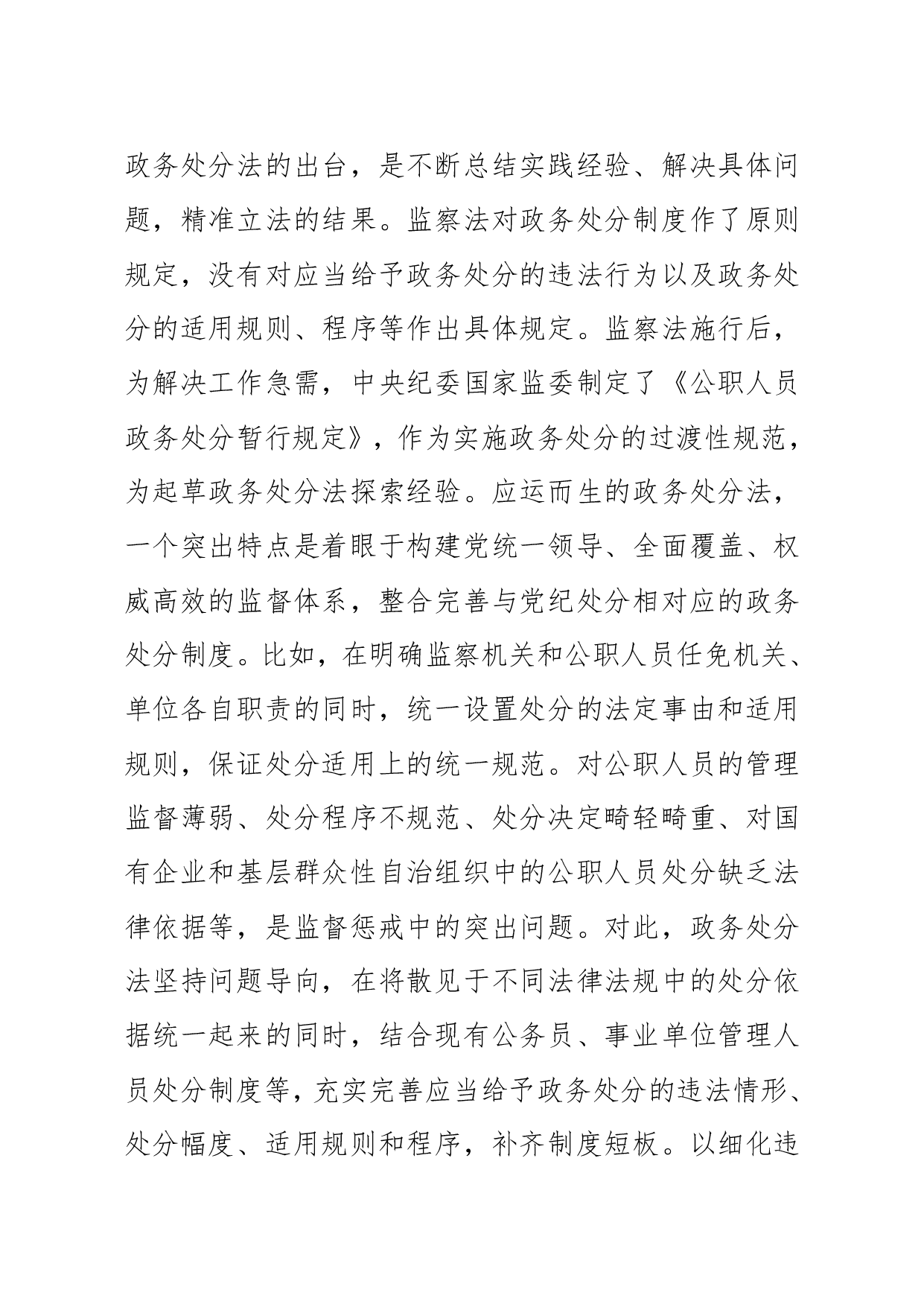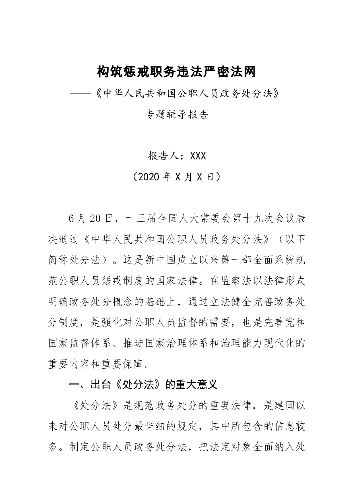 标题:中华人民共和国公职人员政务处分法专题辅导报告