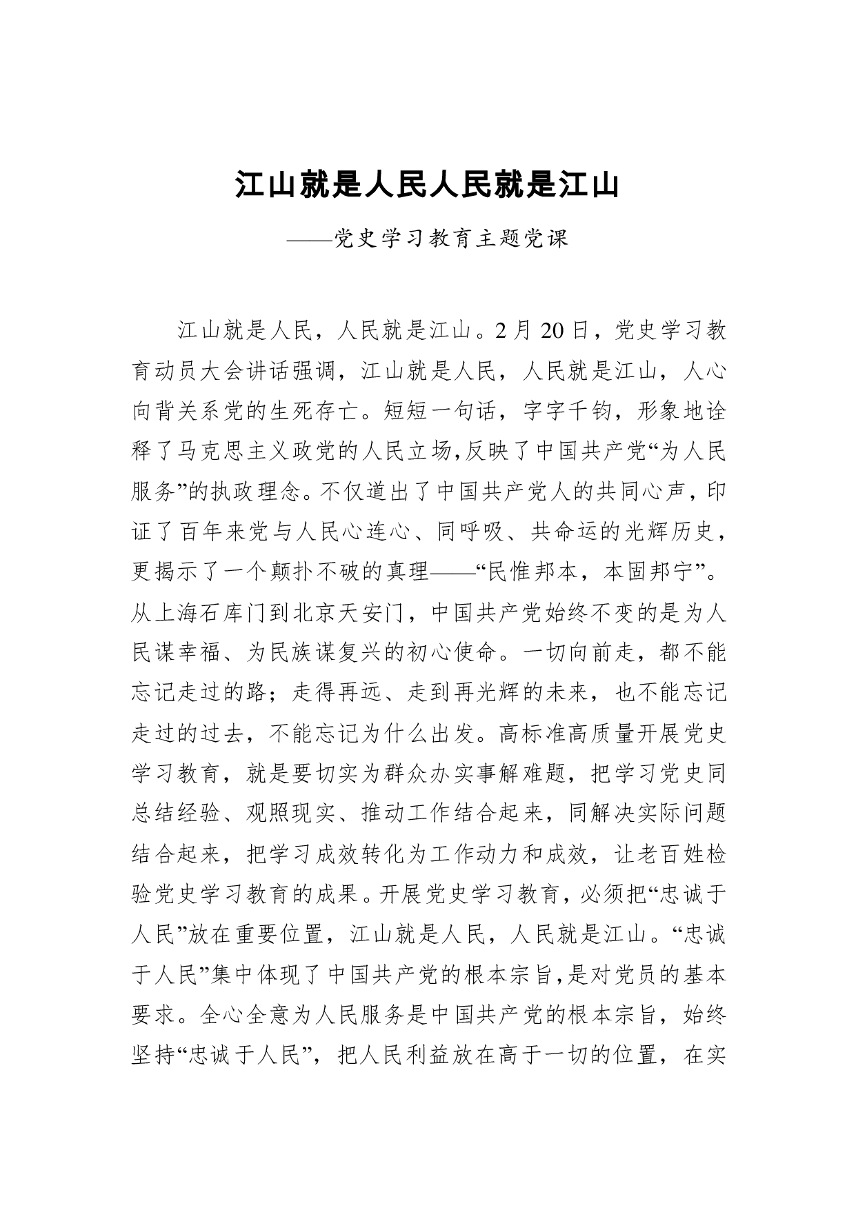 标题:江山就是人民人民就是江山——党史学习教育主题党课