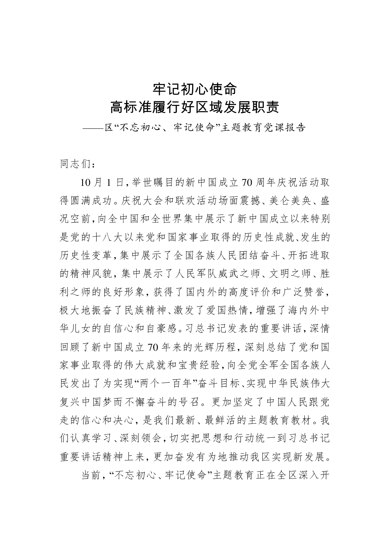 标题:【党课范文】牢记初心使命高标准履行好区域发展职责