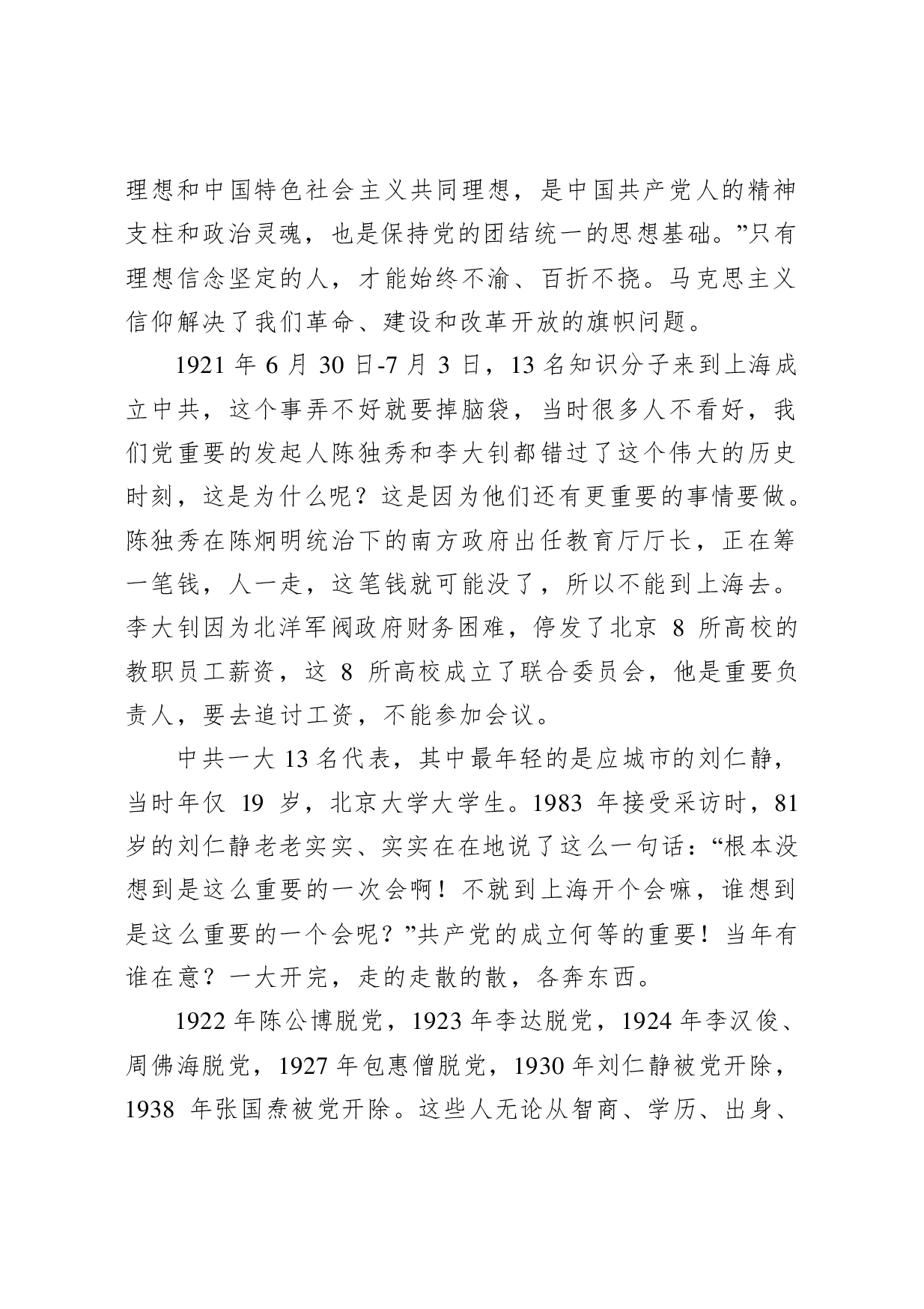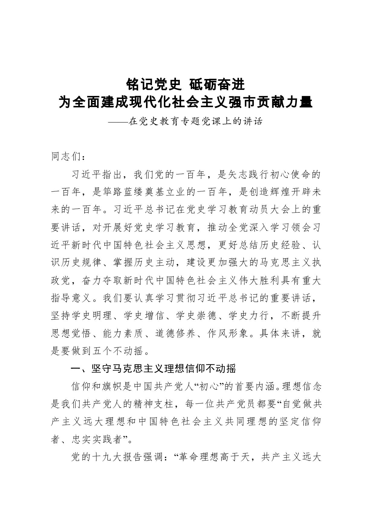 标题:【党课范文】在党史教育专题党课上的讲话