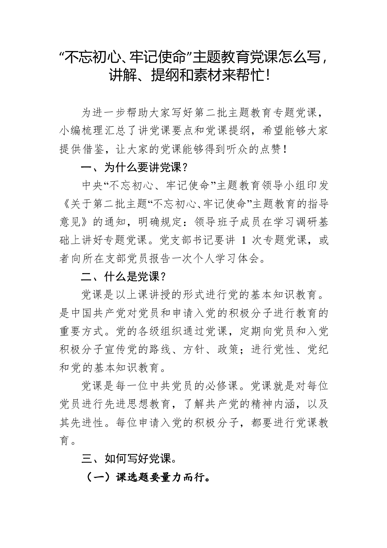 标题:【写作素材】不忘初心牢记使命主题教育党课怎么写讲解提纲和素材来帮忙