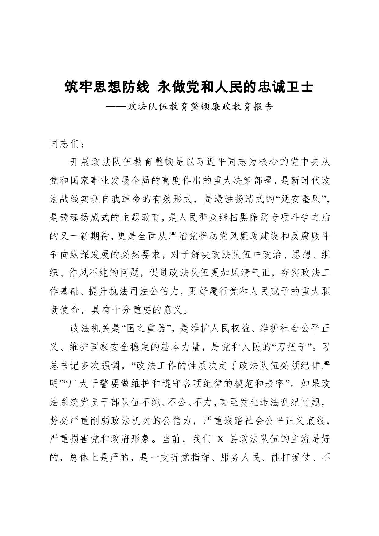 标题:【党课范文】政法系统讲课稿:筑牢思想防线 永做党和人民的忠诚卫士