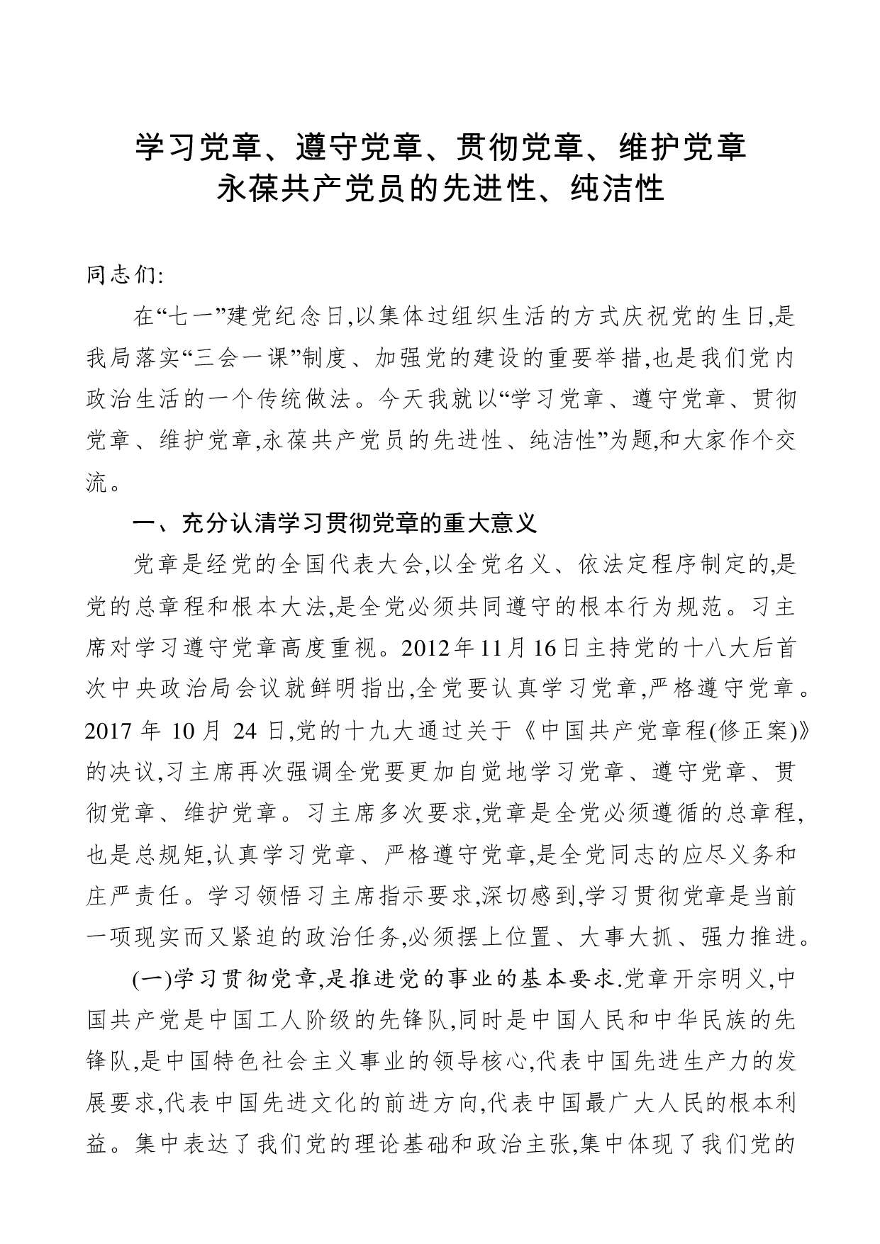 标题:【七一党课】学习党章遵守党章贯彻党章维护党章永葆共产党员的先进性纯洁性