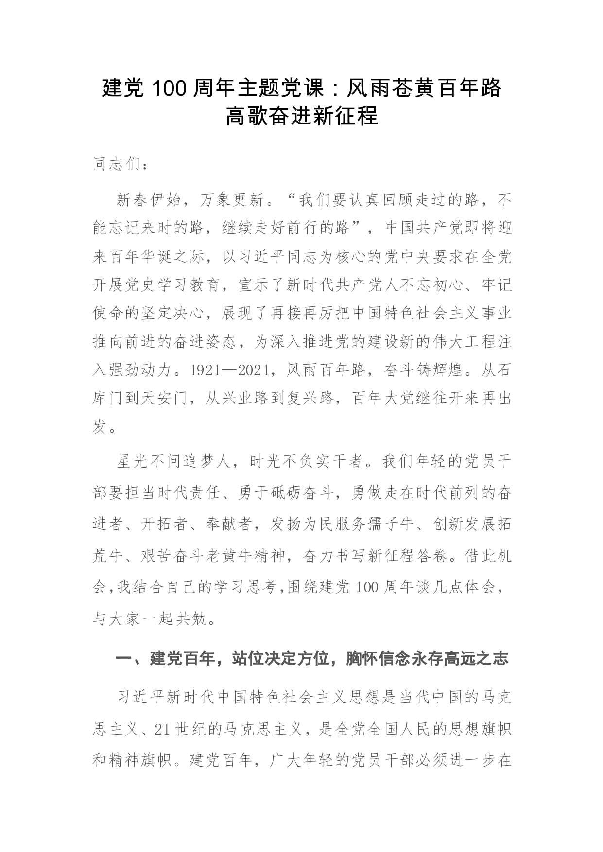 标题:建党100周年主题党课:风雨苍黄百年路 高歌奋进新征程
