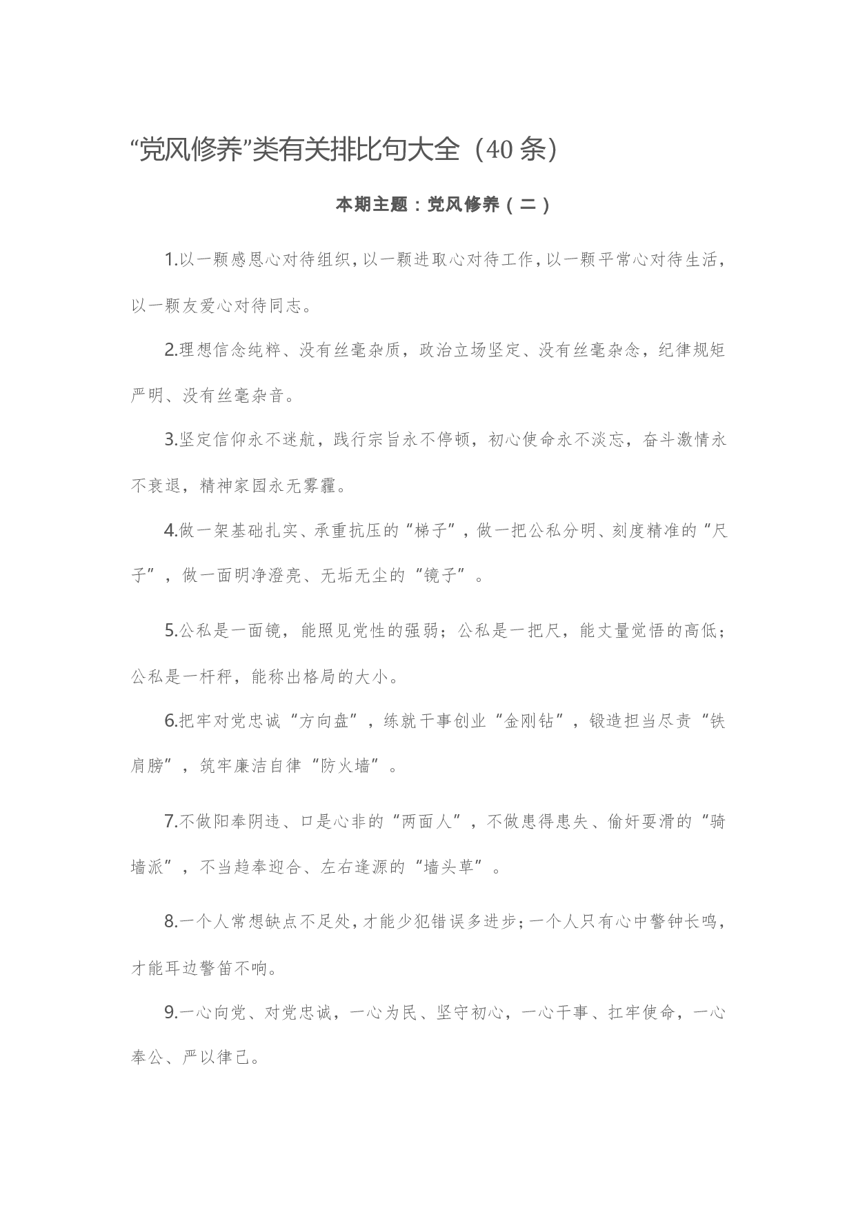 标题:【党课范文】“党风修养”类有关排比句大全(40条)