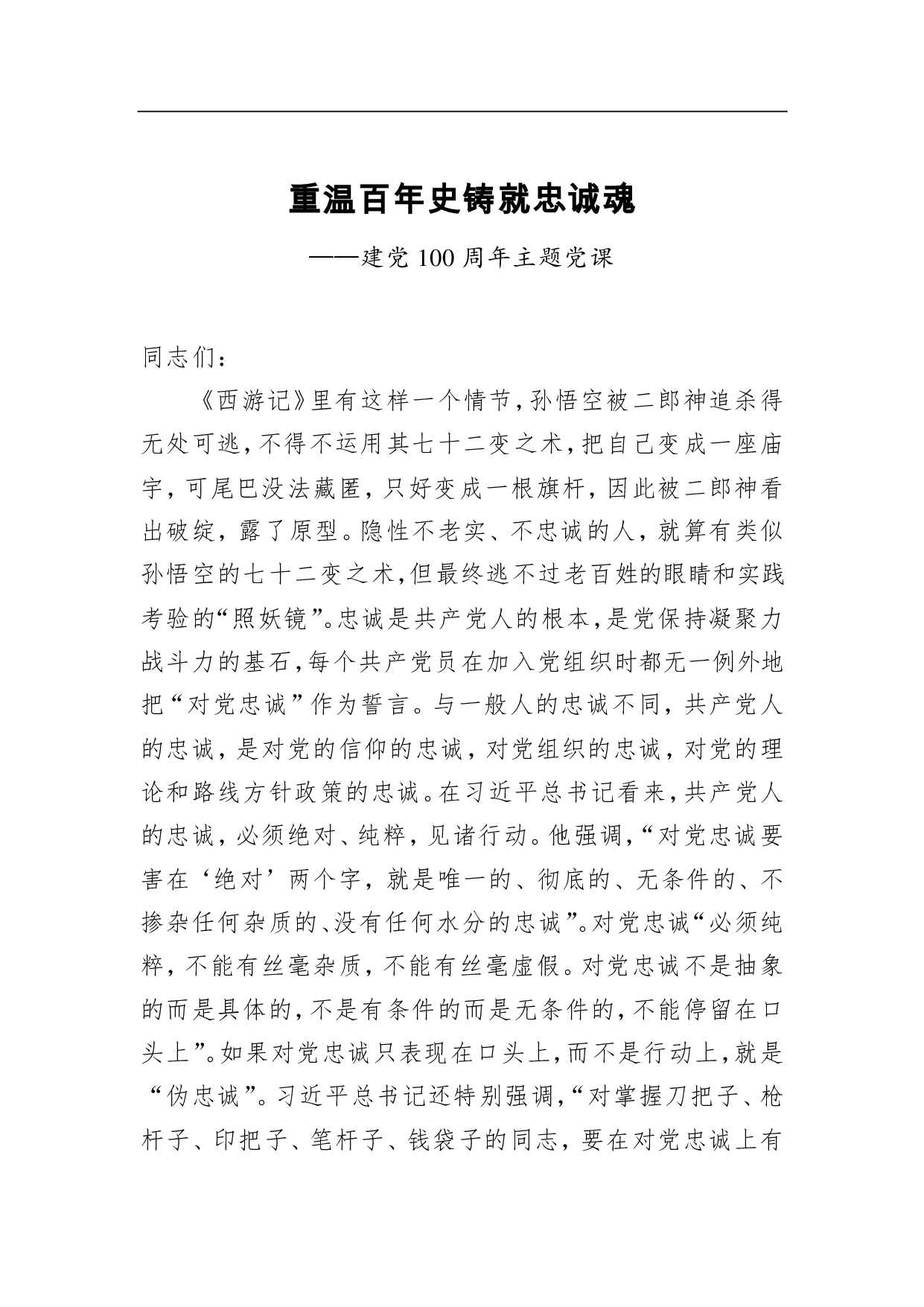 标题:重温百年史铸就忠诚魂——建党100周年主题党课