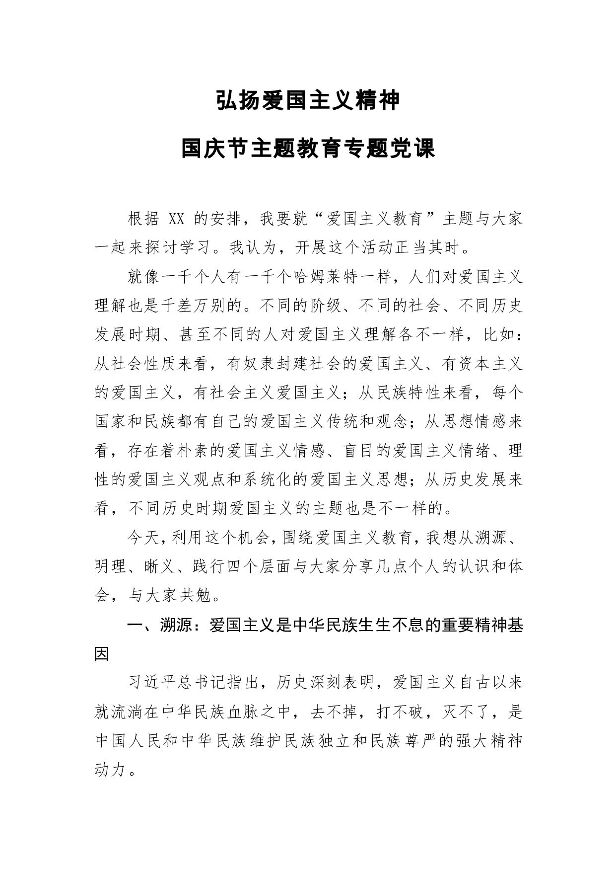 标题:弘扬爱国主义精神 国庆节主题教育专题党课