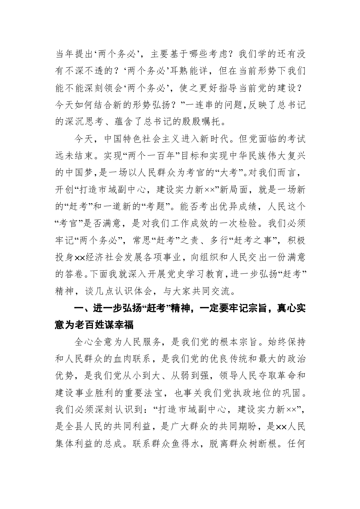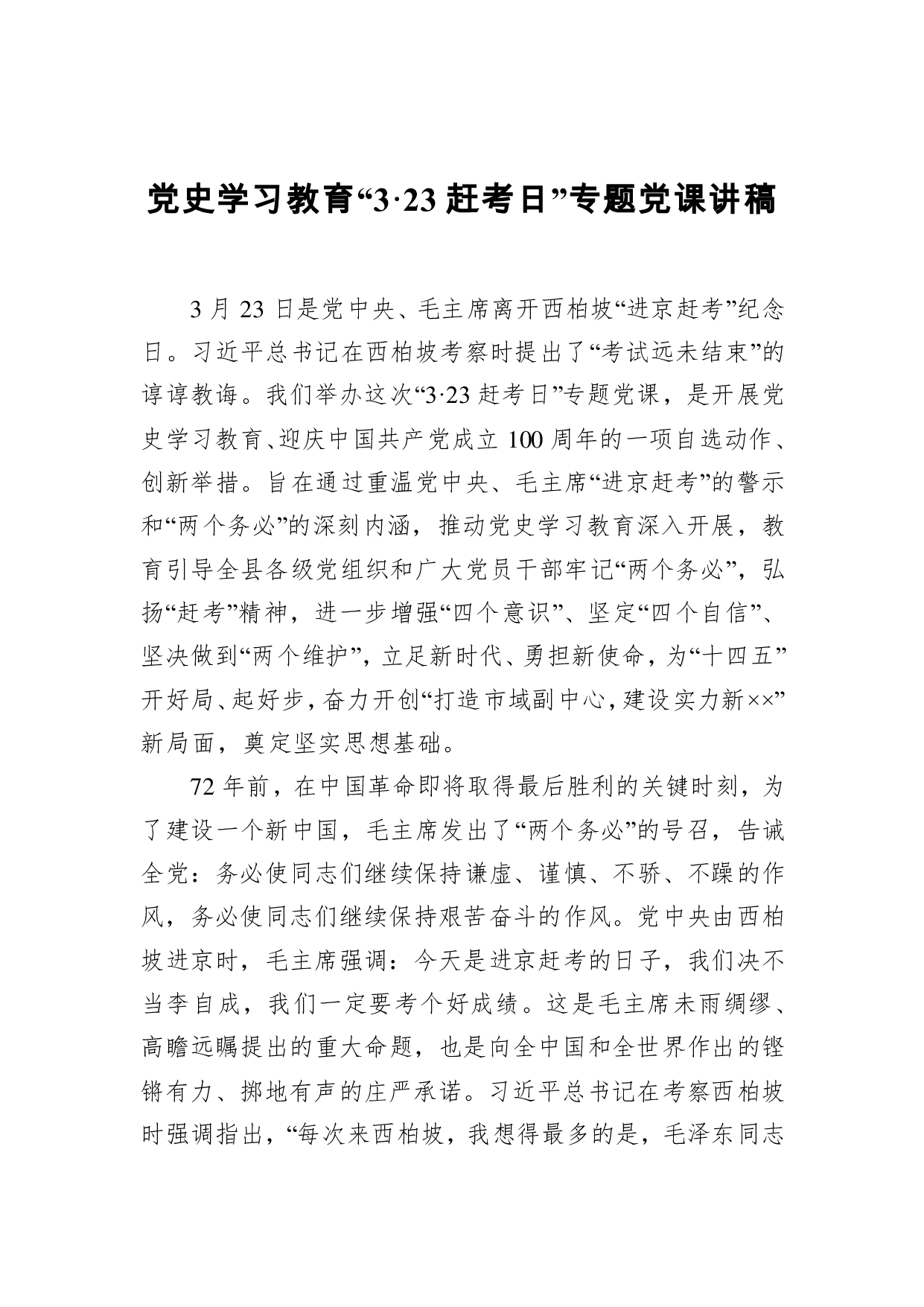 标题:党史学习教育“3·23赶考日”专题党课讲稿