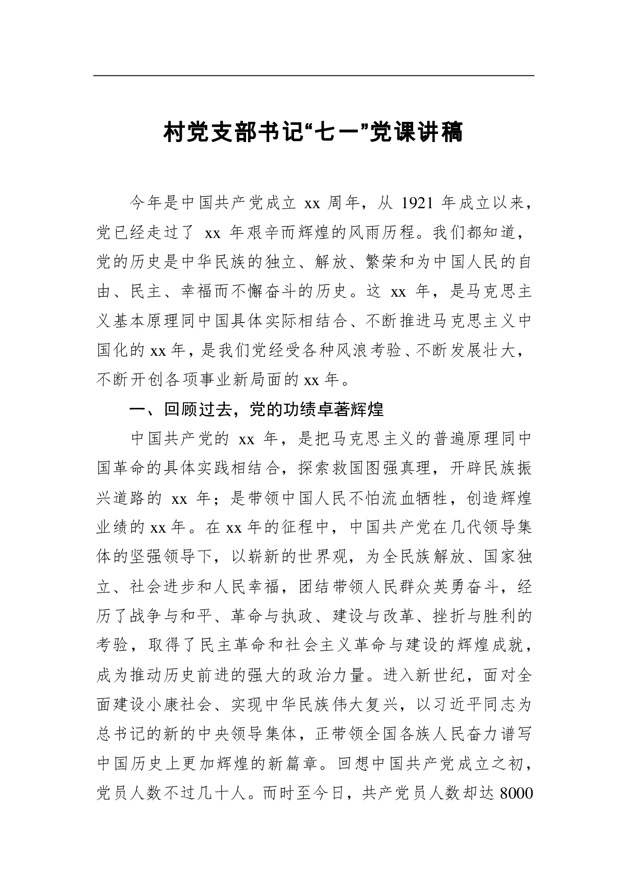 标题:村党支部书记“七一”党课讲稿