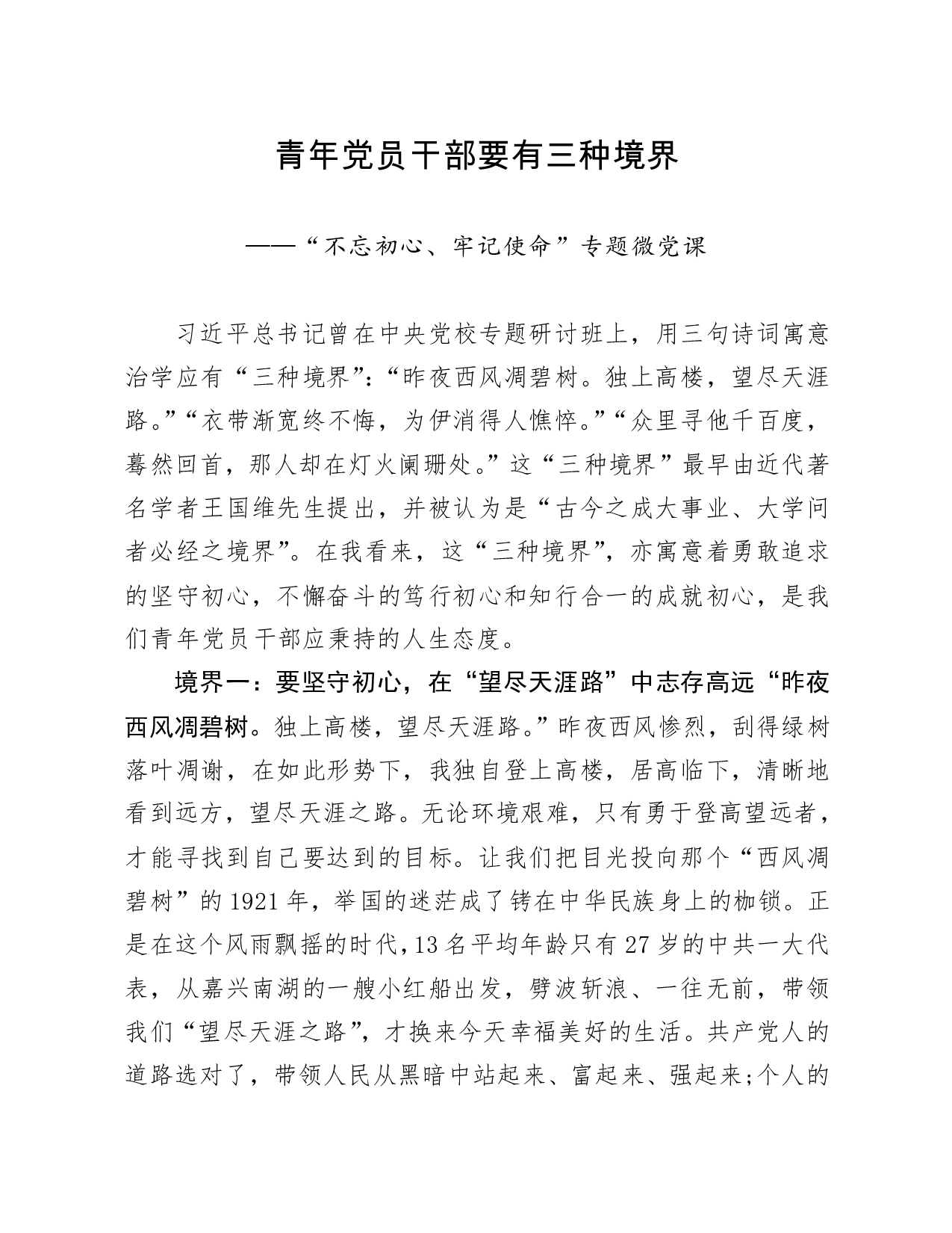 标题:不忘初心牢记使命专题微党课
