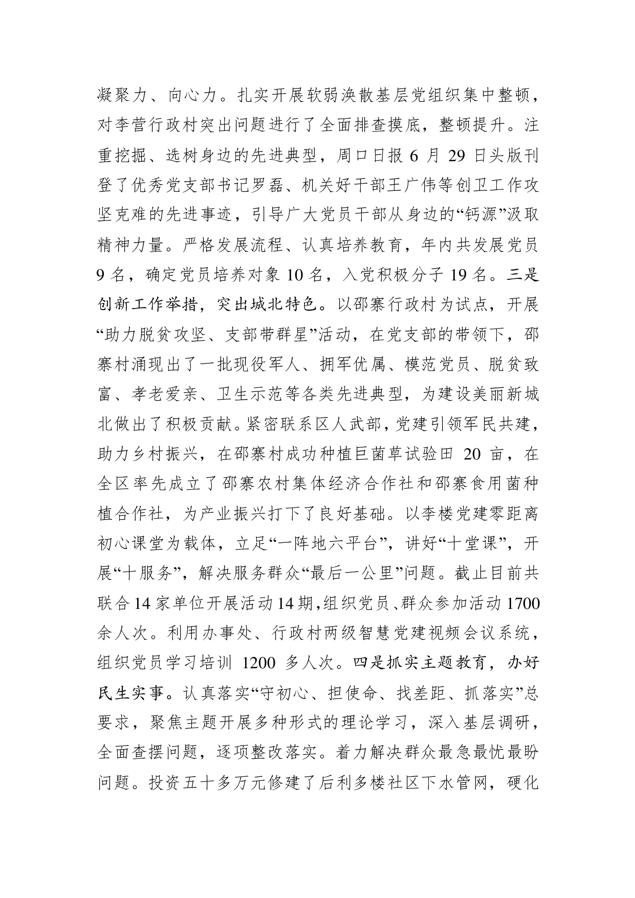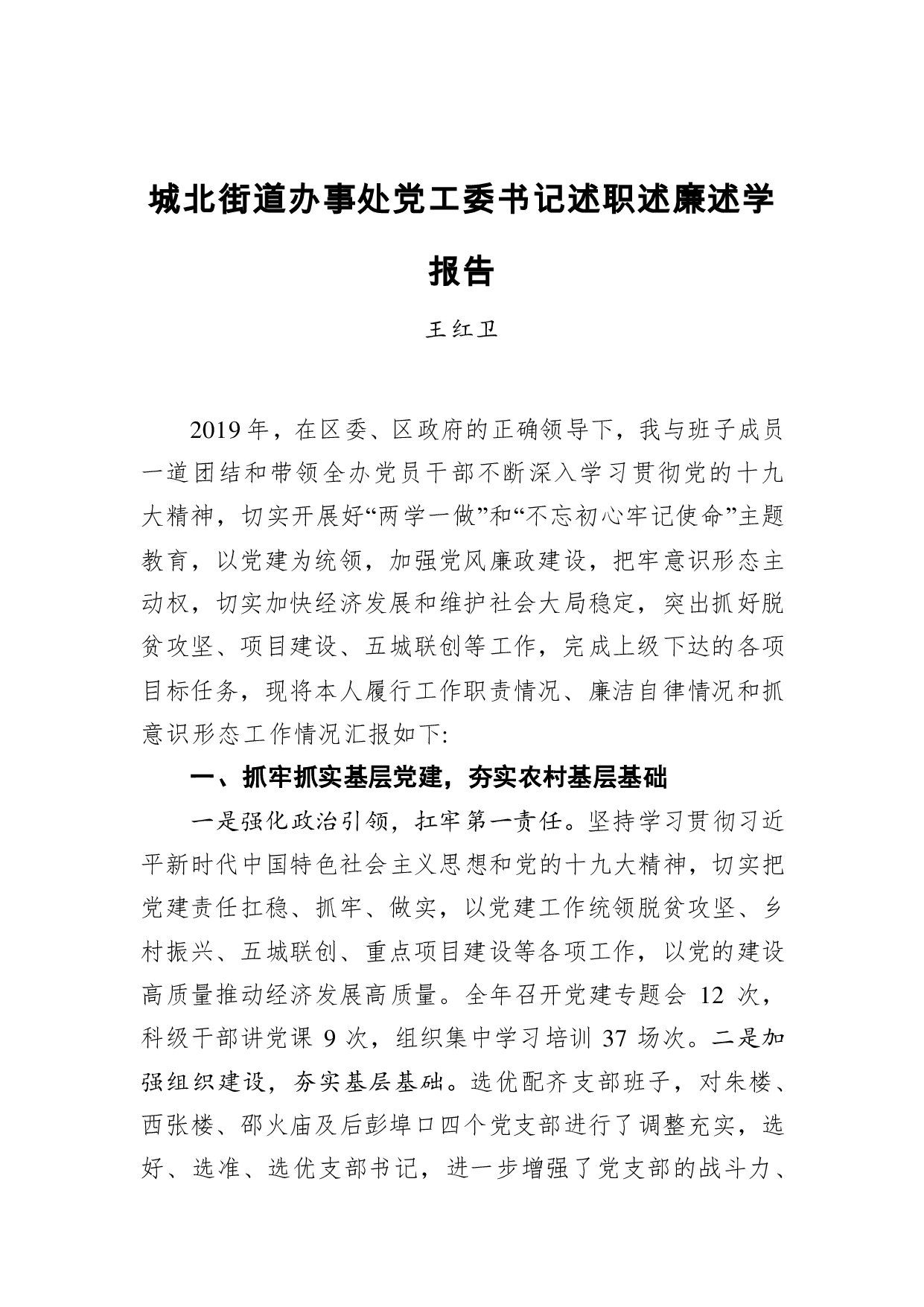 标题:王红卫:城北街道办事处党工委书记述职述廉述学报告
