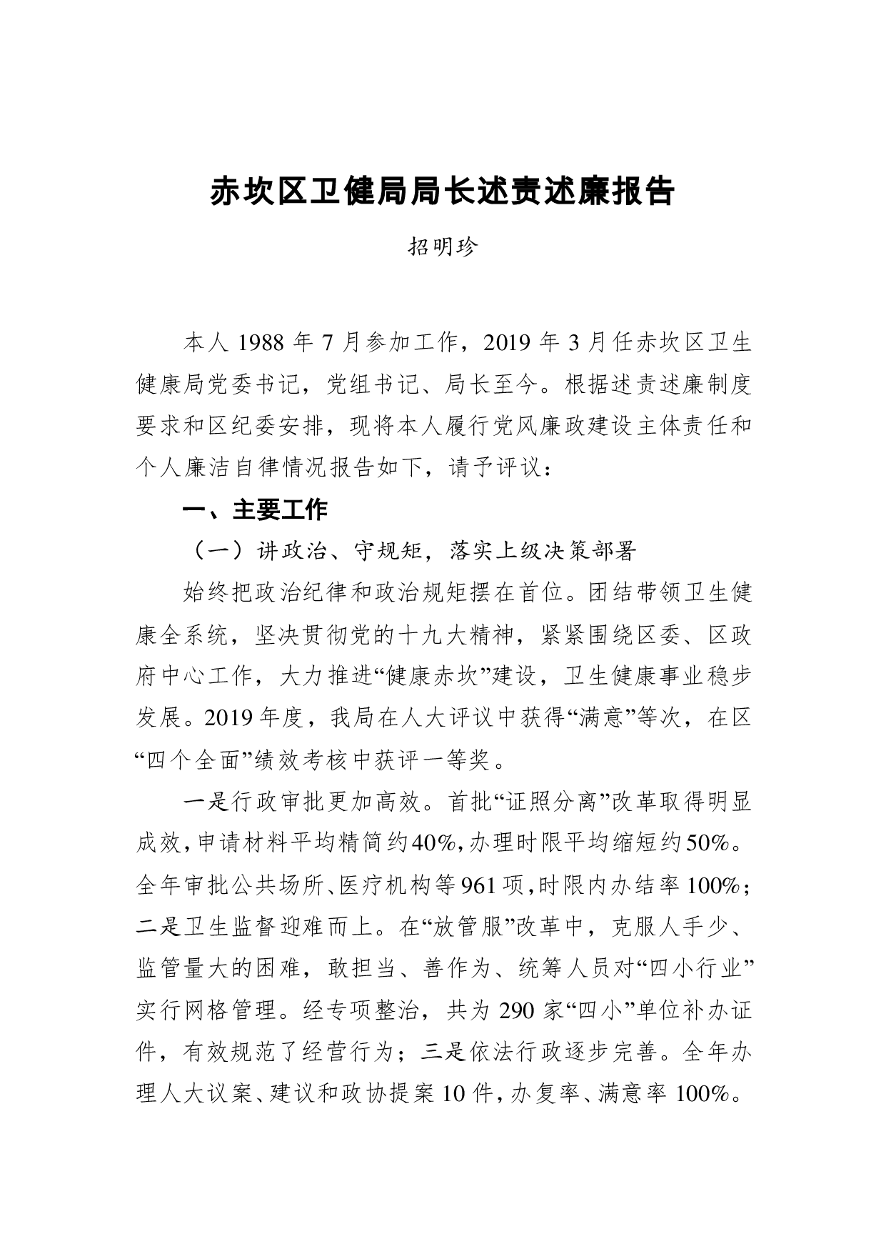 标题:招明珍:赤坎区卫健局局长述责述廉报告