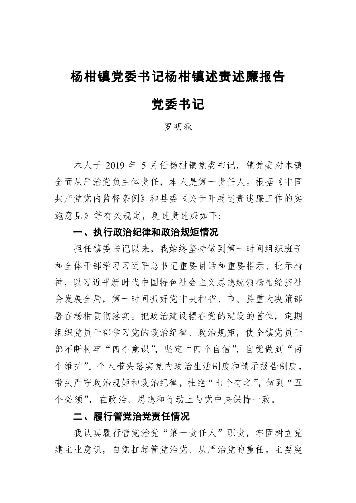 标题:罗明秋:杨柑镇党委书记述责述廉报告