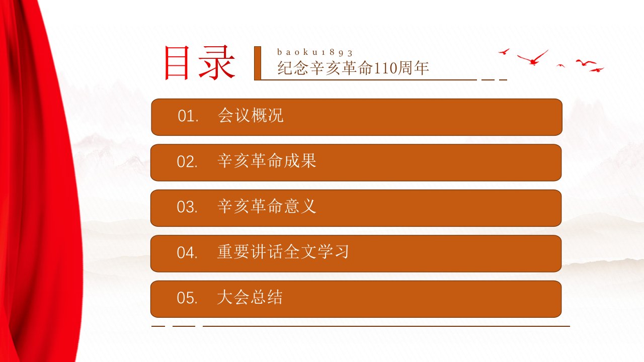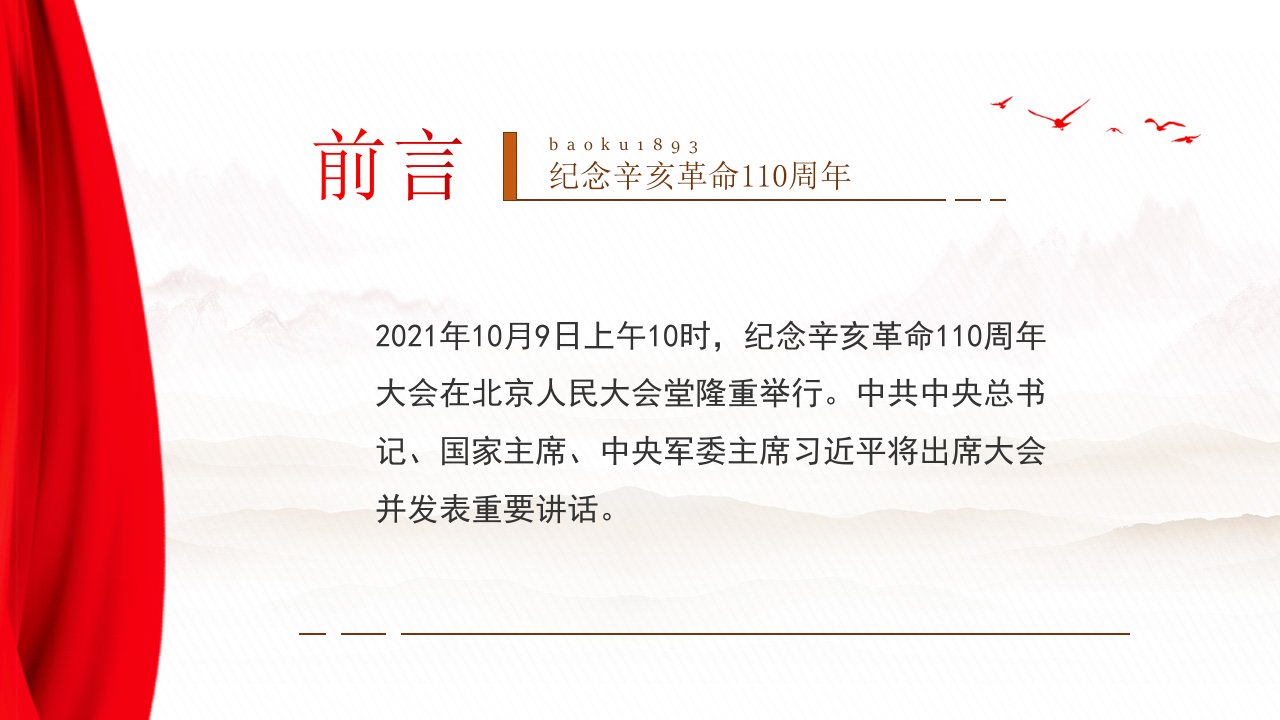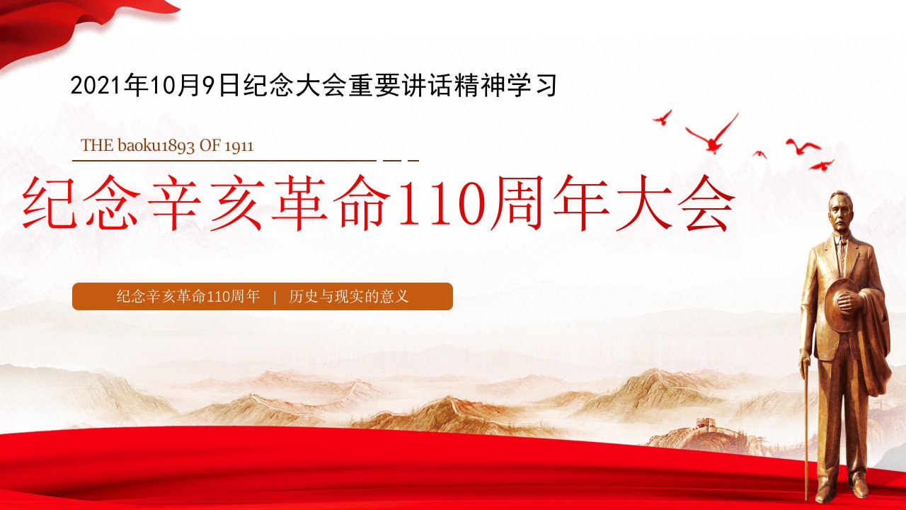 标题:PPT:纪念辛亥革命110周年大会重要讲话精神宣讲模板件