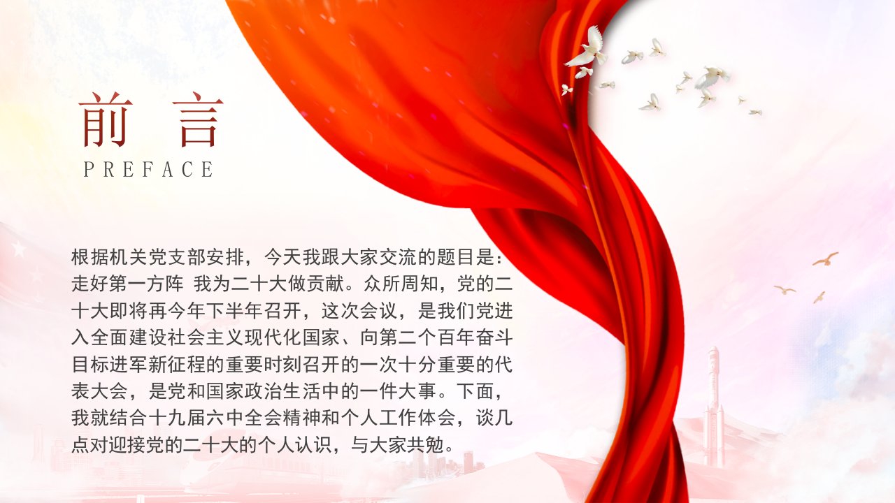标题:党员机关干部走好第一方阵我为二十大做贡献党课讲稿ppt课件