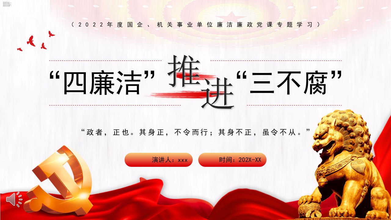标题:廉洁廉政专题党课PPT:“四廉洁”推进“三不腐”