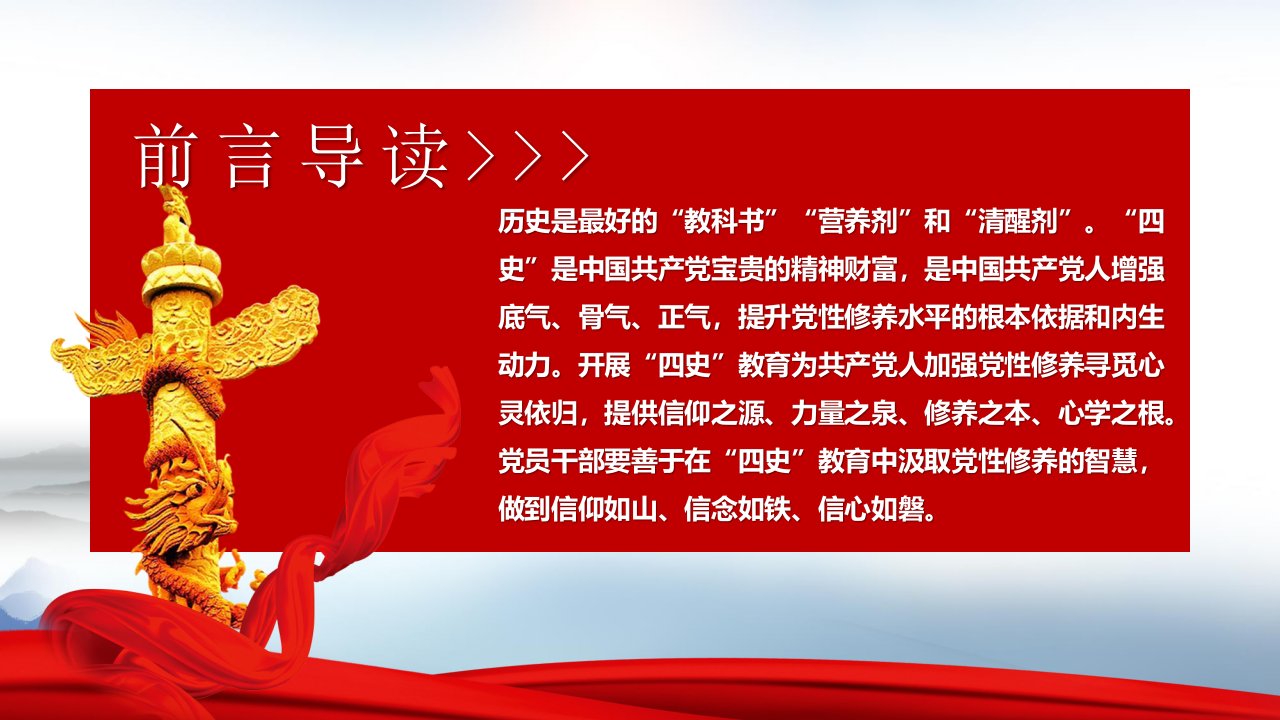 标题:在四史教育中汲取党性修养的智慧党课PPT(20210427)