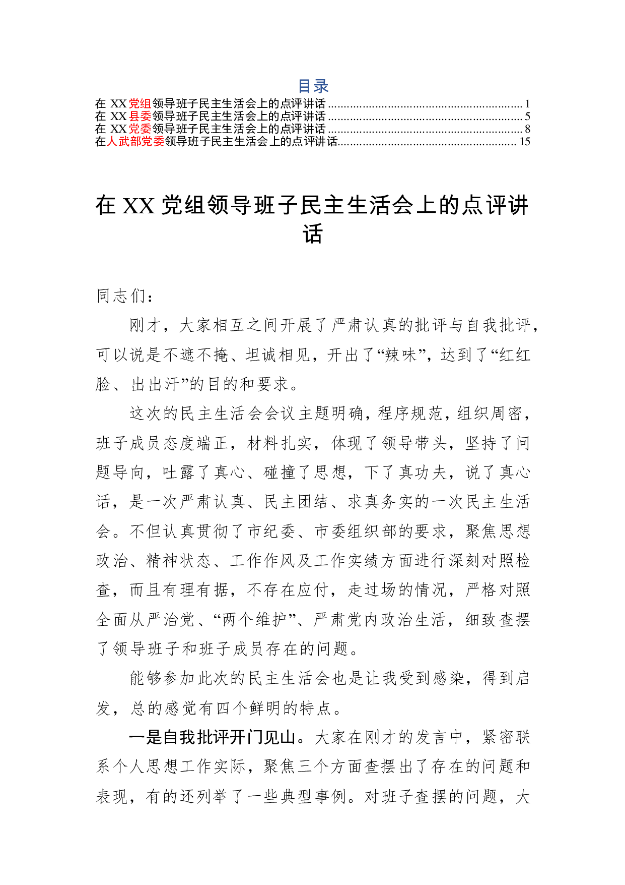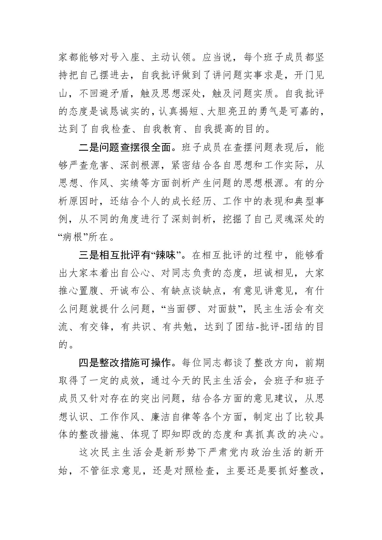 标题:在领导班子民主生活会上的点评讲话(4篇)