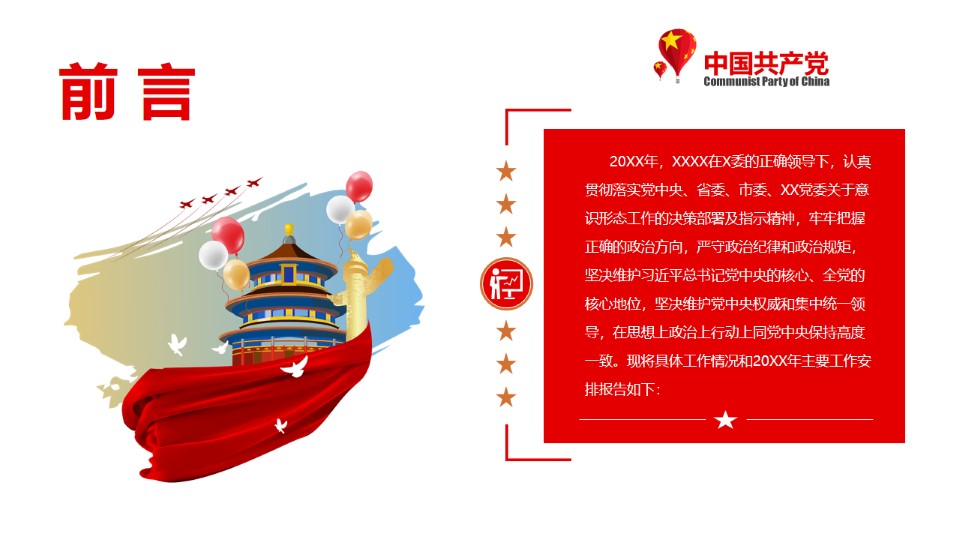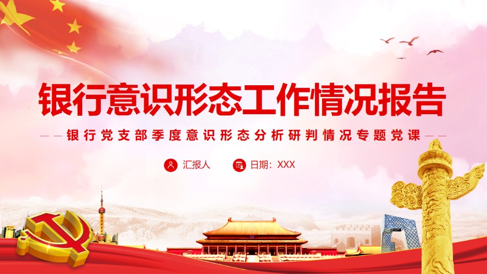 标题:银行意识形态工作情况报告PPT模板 附讲稿