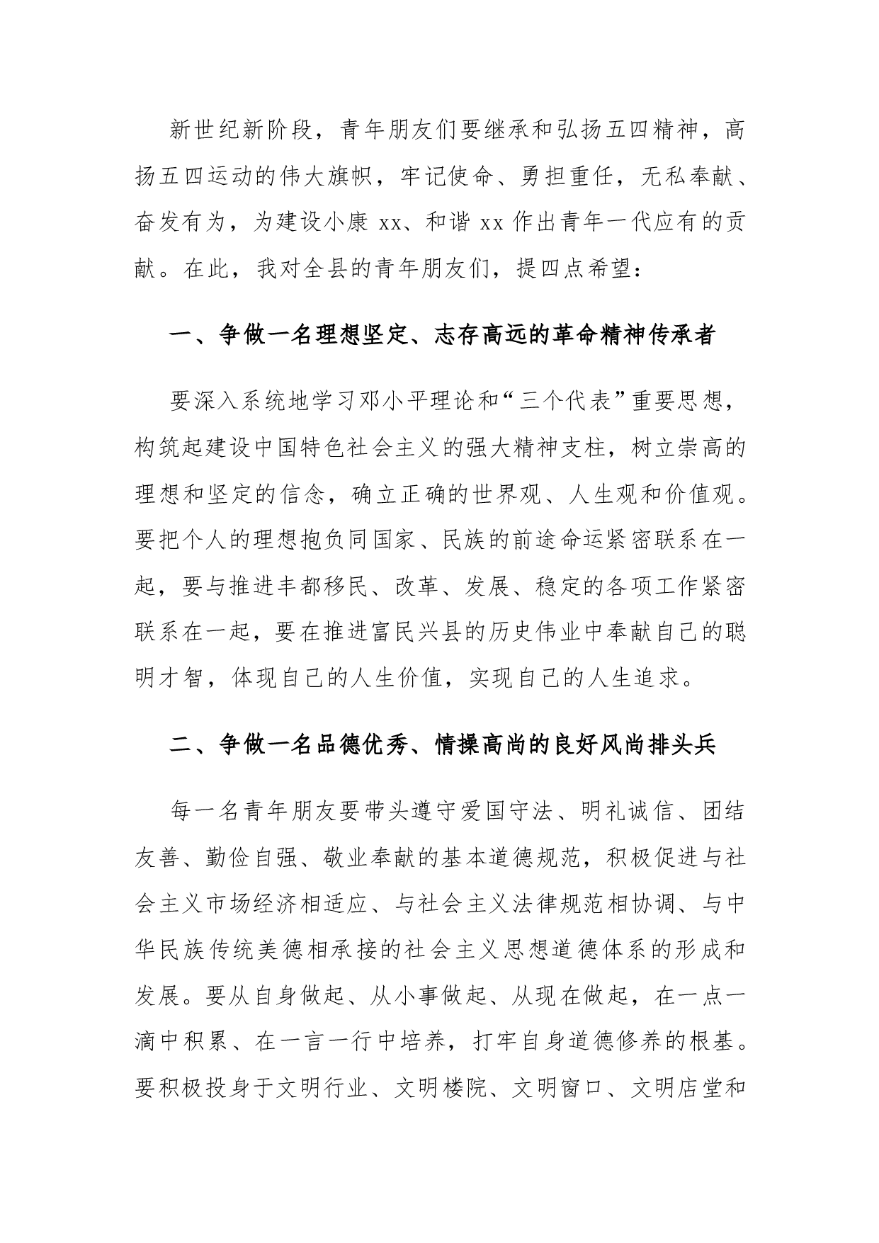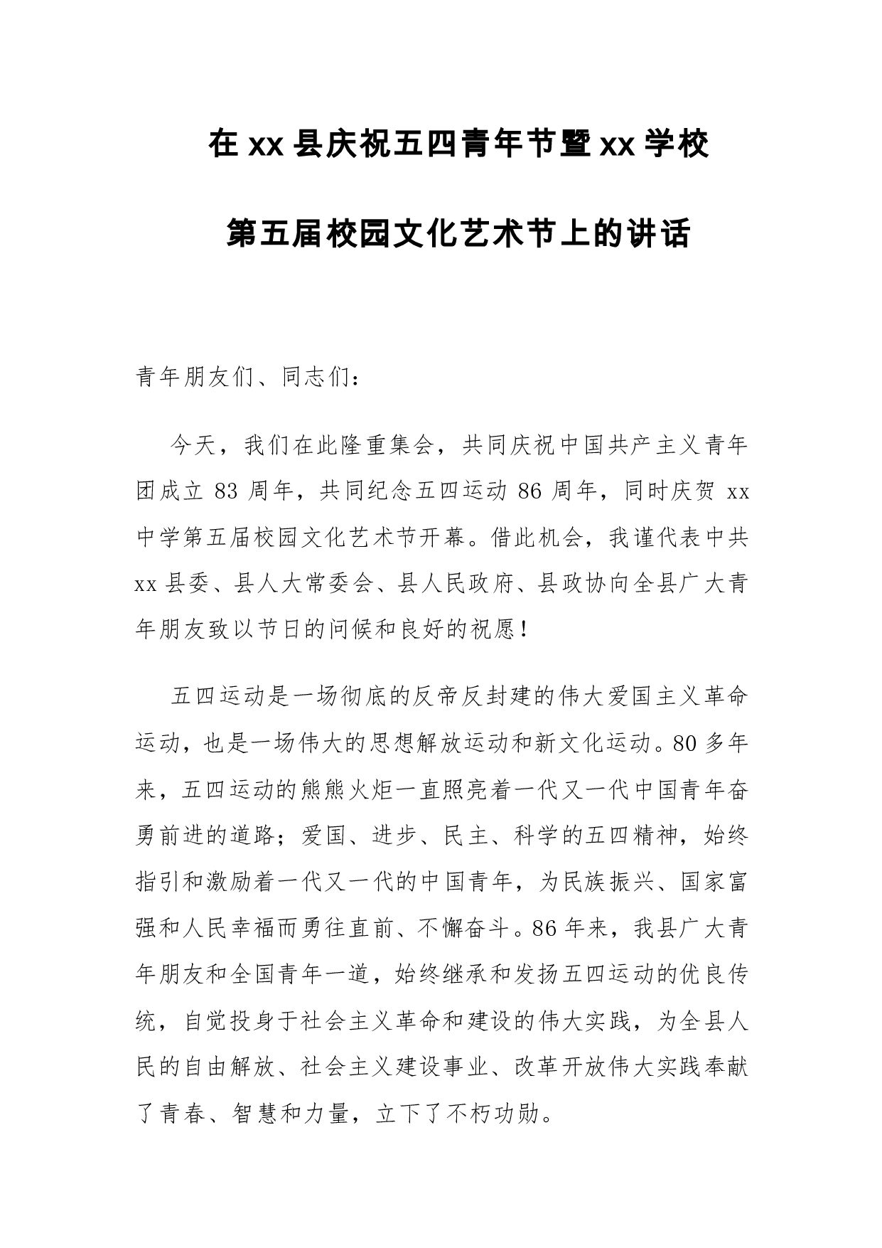 标题:县委书记在县庆祝五四青年节暨xx学第五届校园文化艺术节上的讲话(精品)