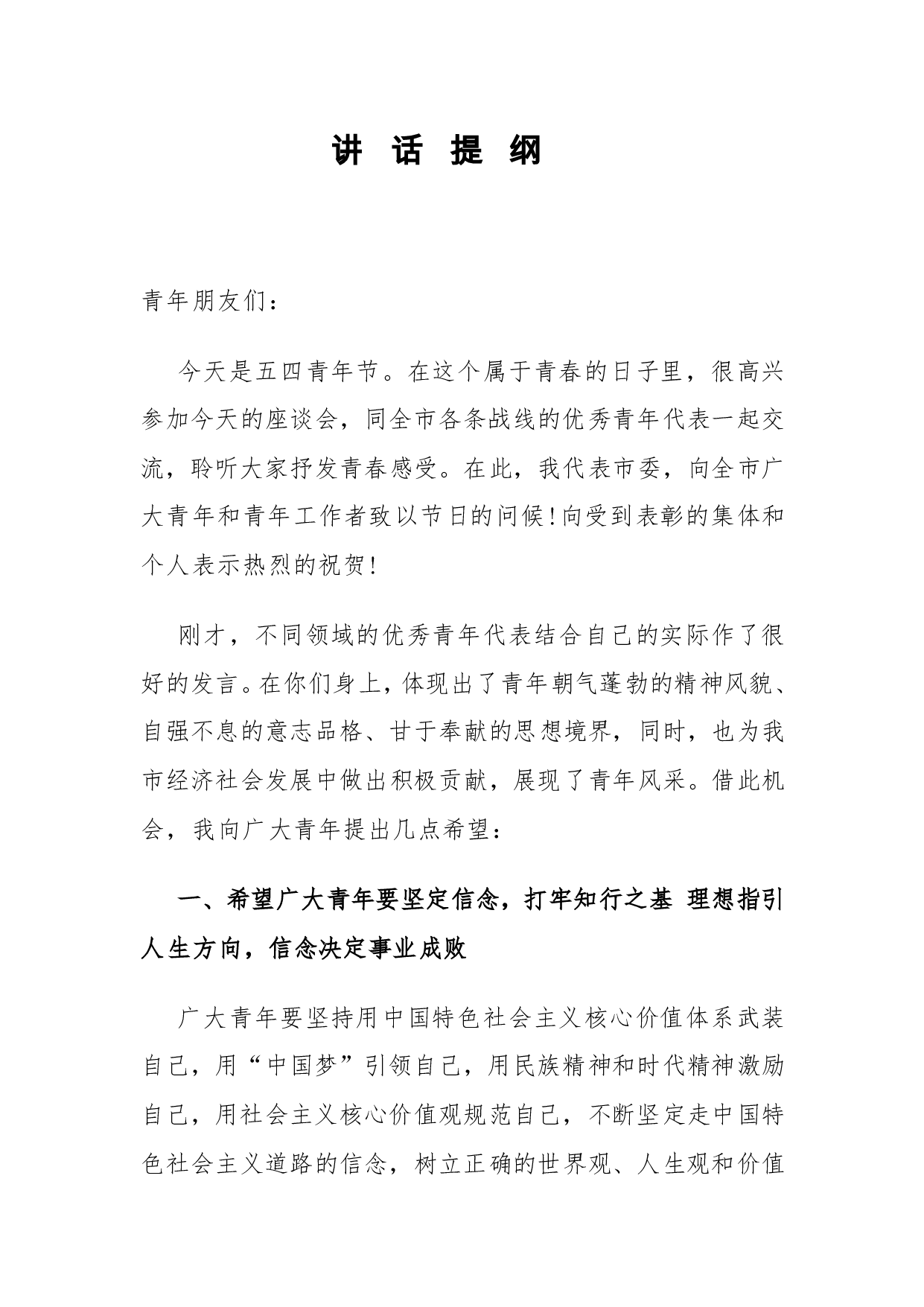 标题:市委副书记在全市五四青年节座谈会上的讲话