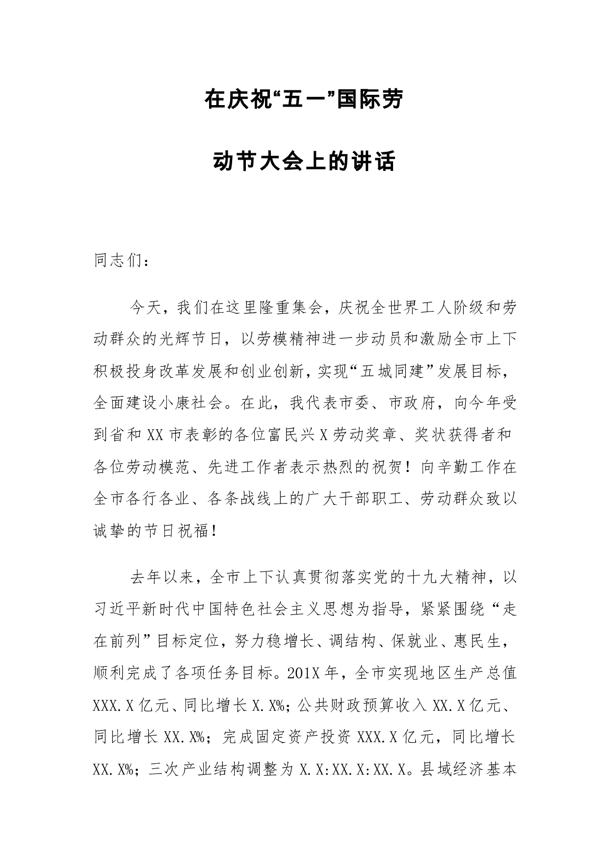 标题:市委副书记在庆祝“五一”国际劳动节大会上的讲话