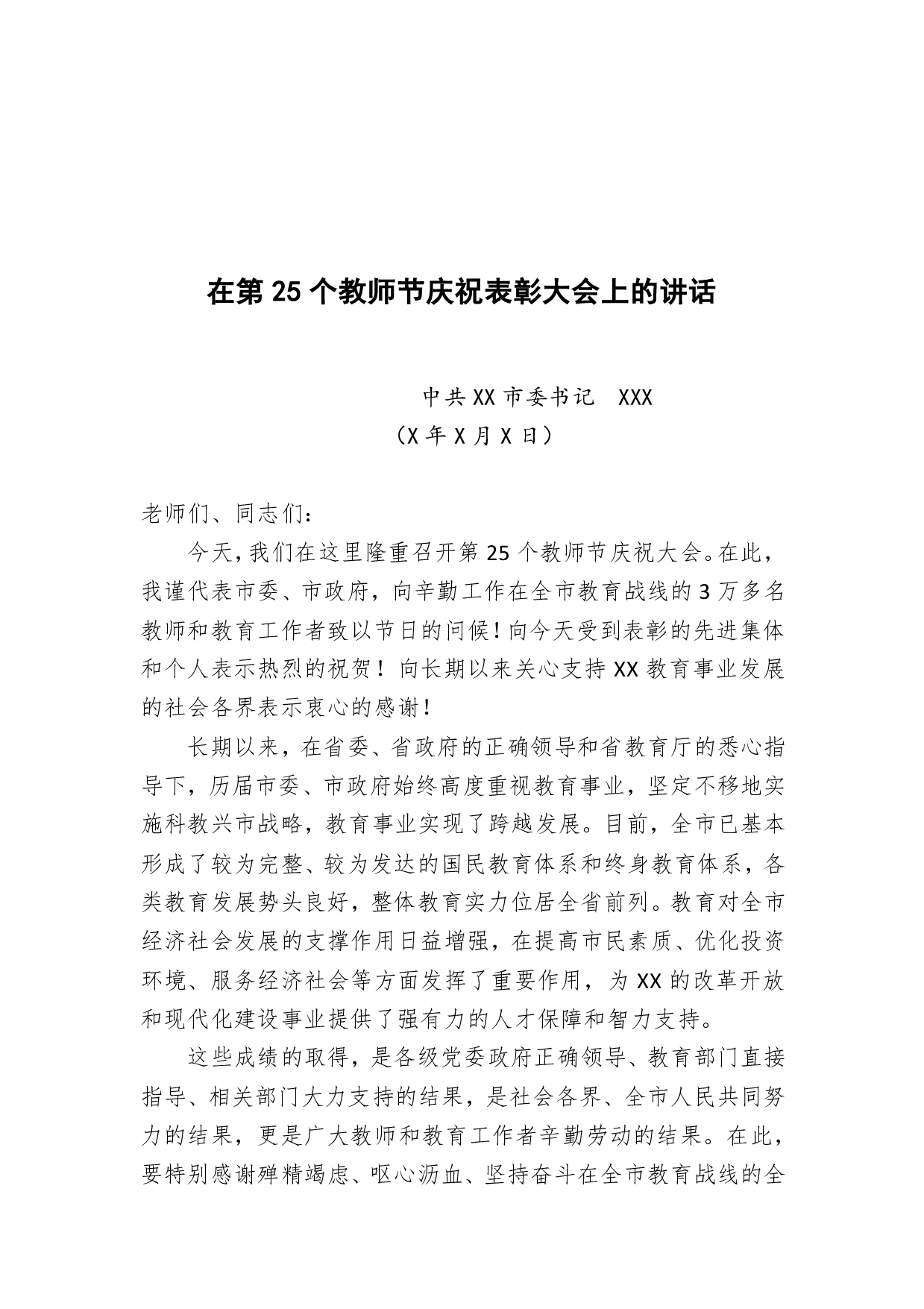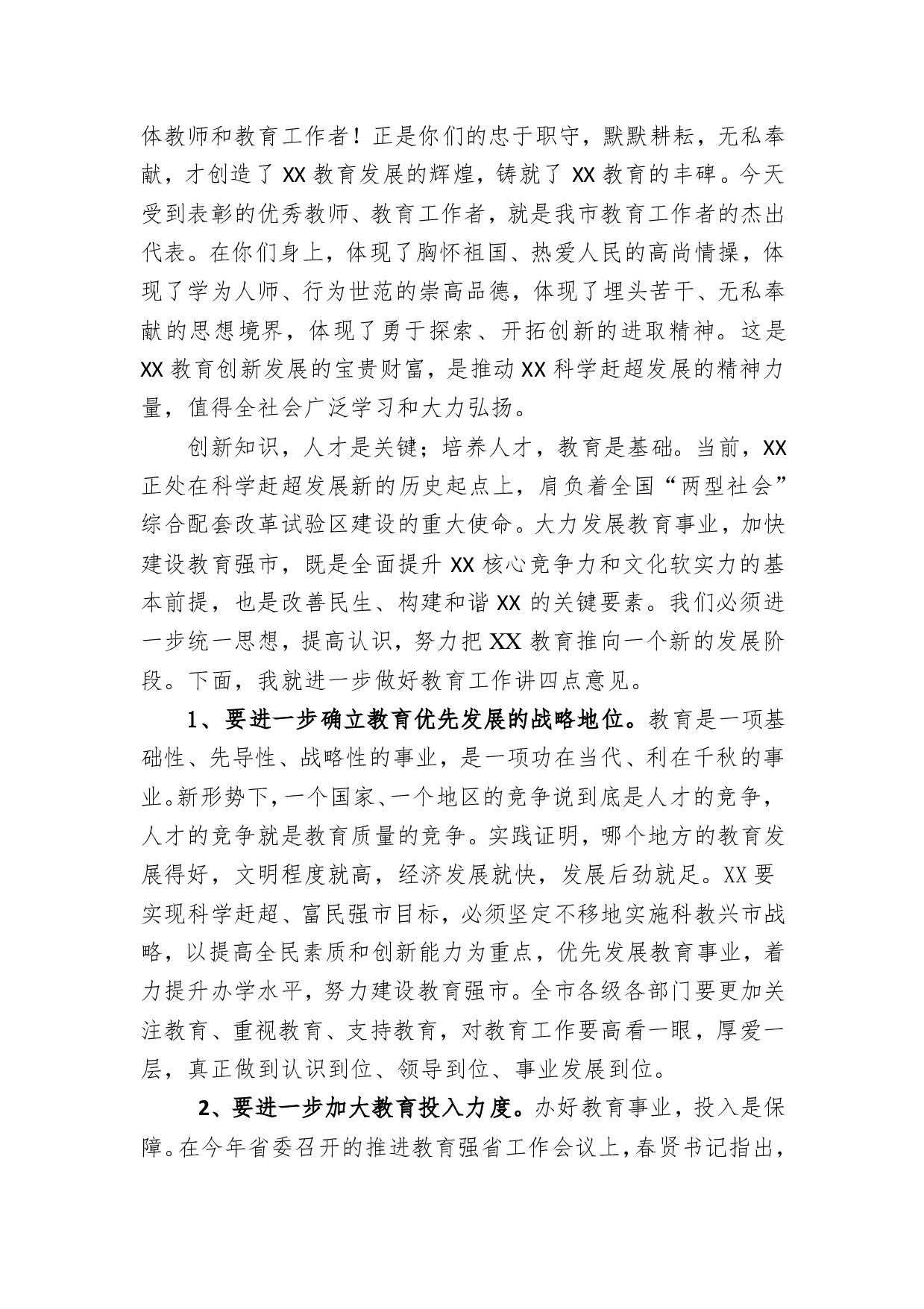 标题:市委书记XXX在第X个教师节庆祝表彰大会上的讲话