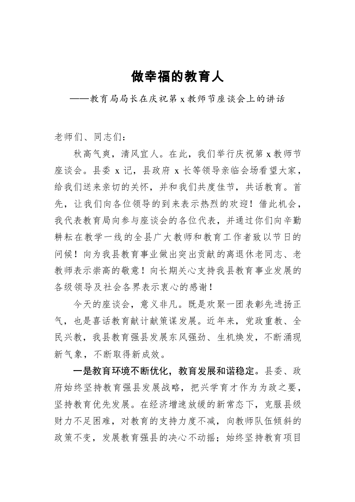标题:做幸福的教育人——教育局局长在庆祝第x教师节座谈会上的讲话