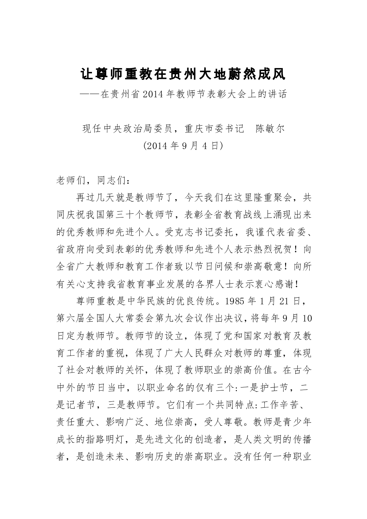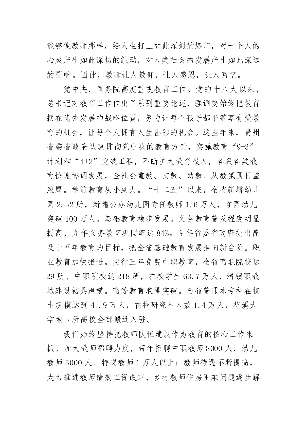 标题:教师节讲话:让尊师重教在贵州大地蔚然成风