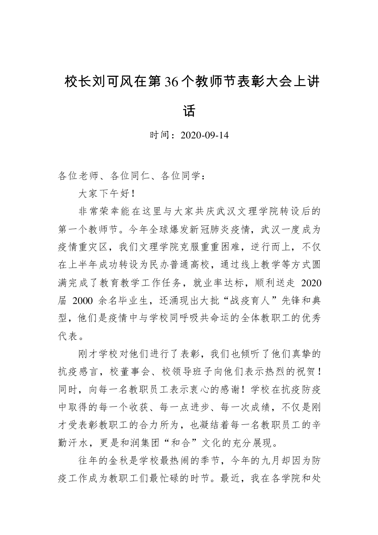 标题:校长刘可风在第36个教师节表彰大会上讲话