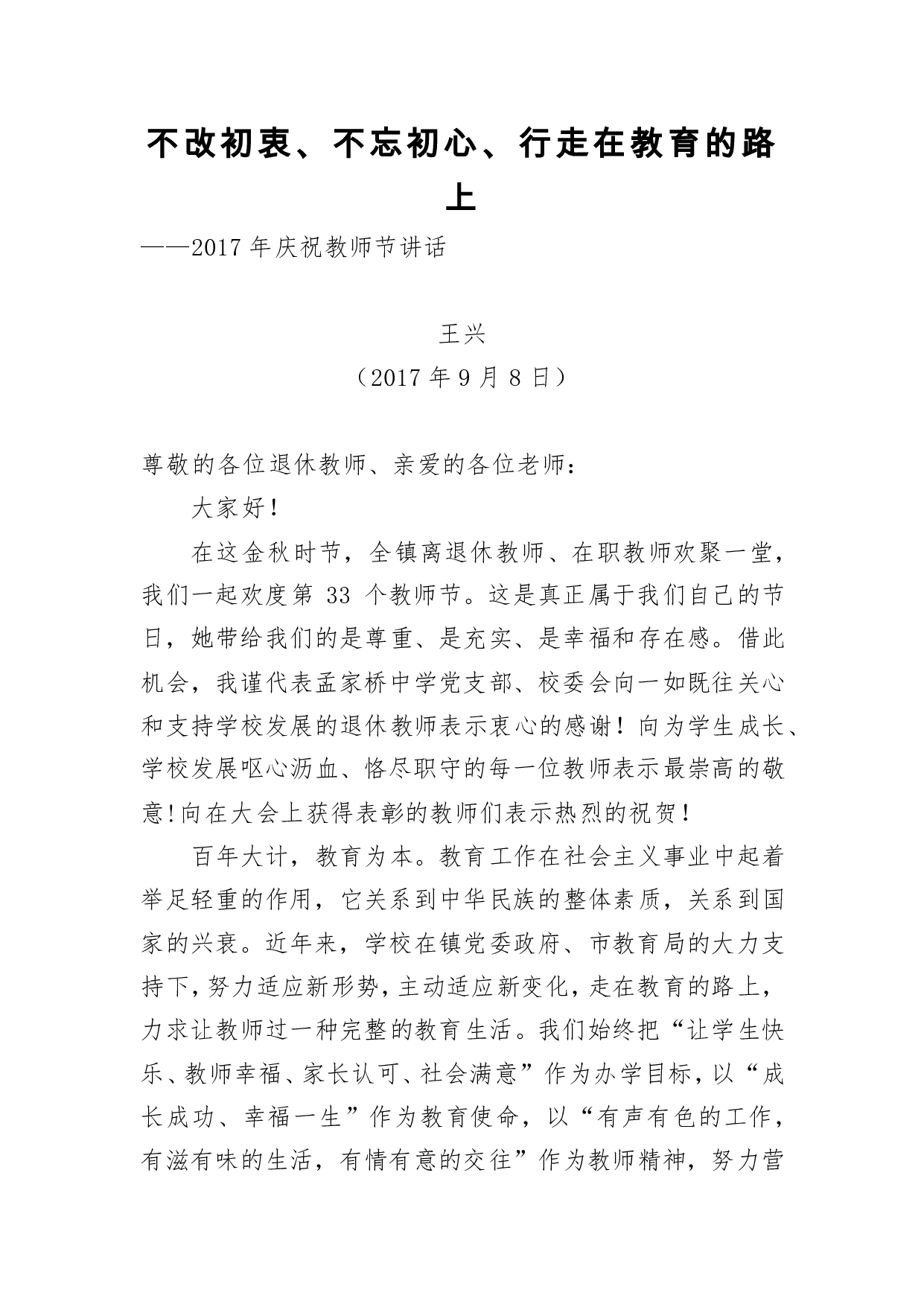 标题:教师节讲话:不改初衷、不忘初心、行走在教育的路上