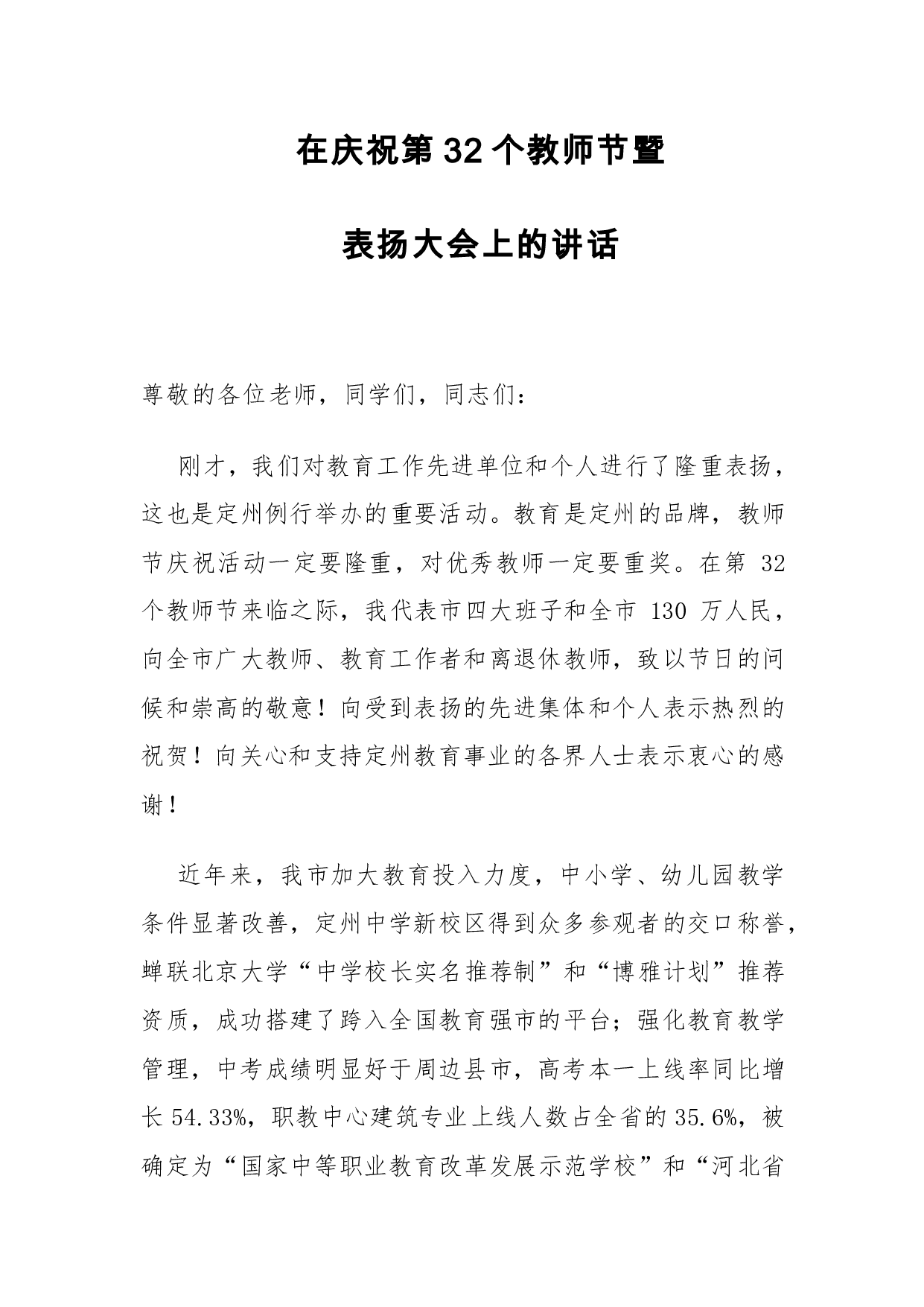 标题:市长在庆祝第32个教师节暨表扬大会上的讲话