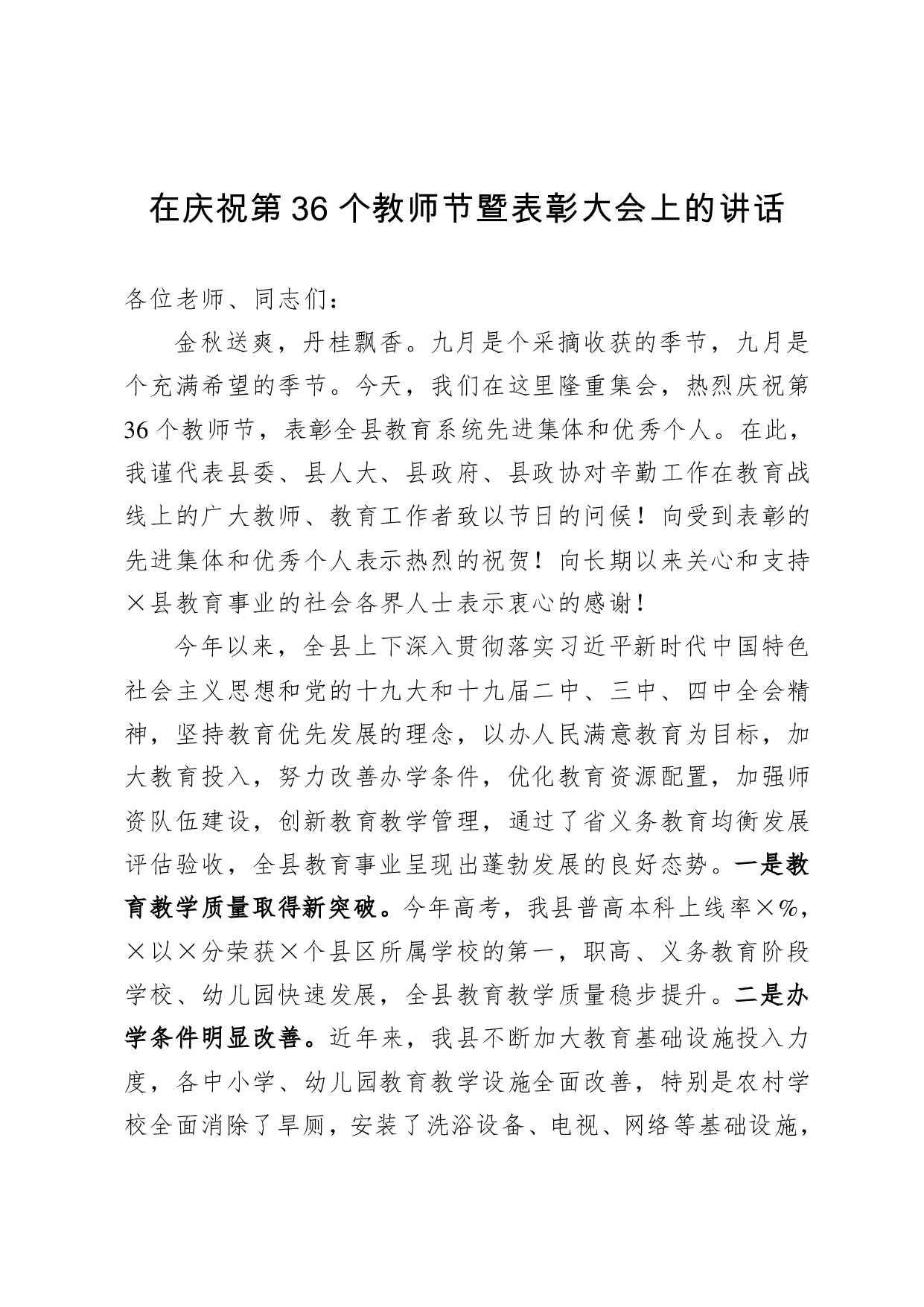 标题:在庆祝第36个教师节暨表彰大会上的讲话