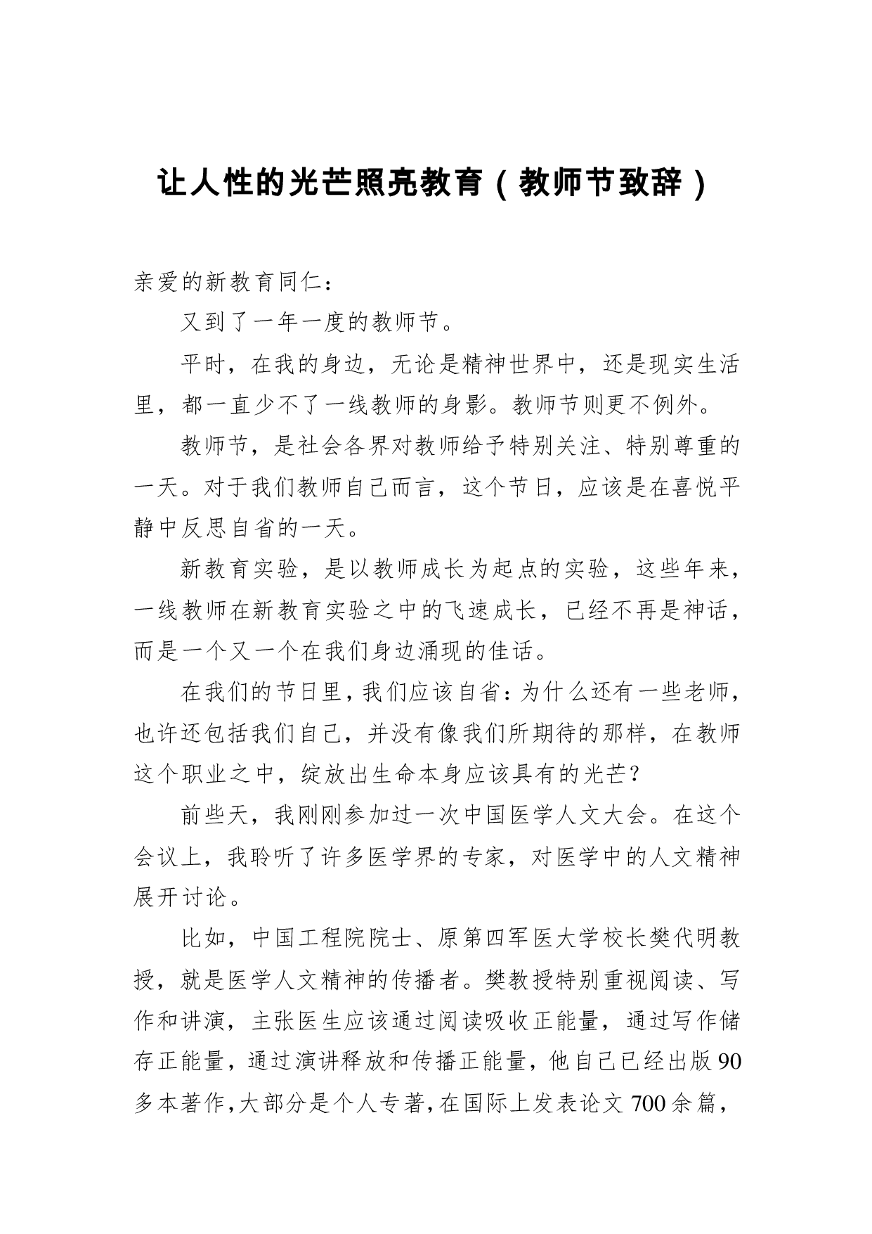 标题:让人性的光芒照亮教育(教师节致辞)