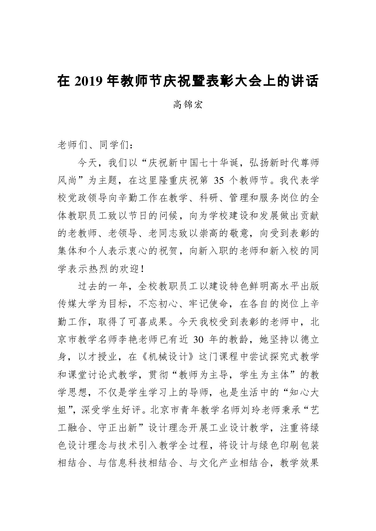 标题:高锦宏:在2019年教师节庆祝暨表彰大会上的讲话