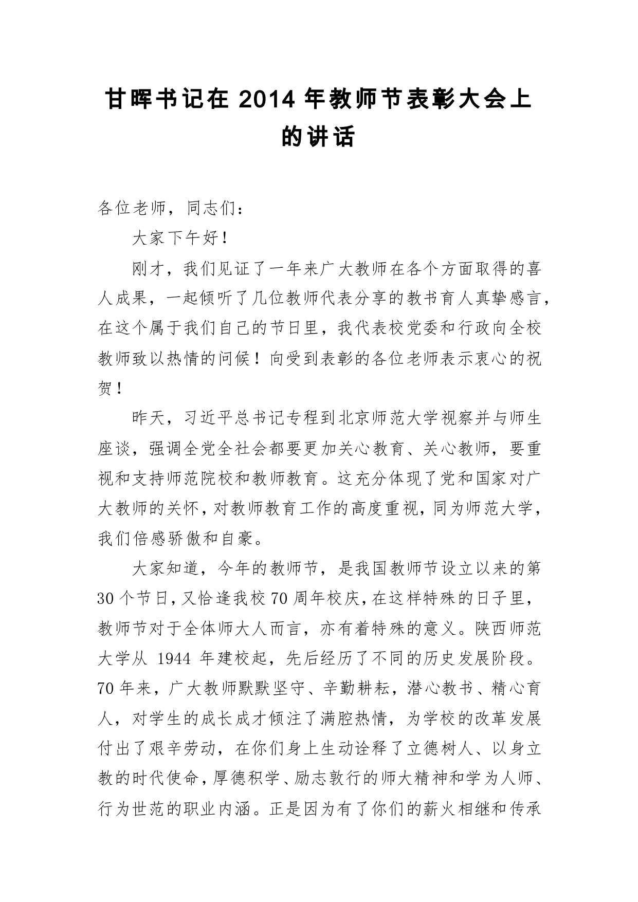 标题:教师节讲话:甘晖书记在2014年教师节表彰大会上的讲话