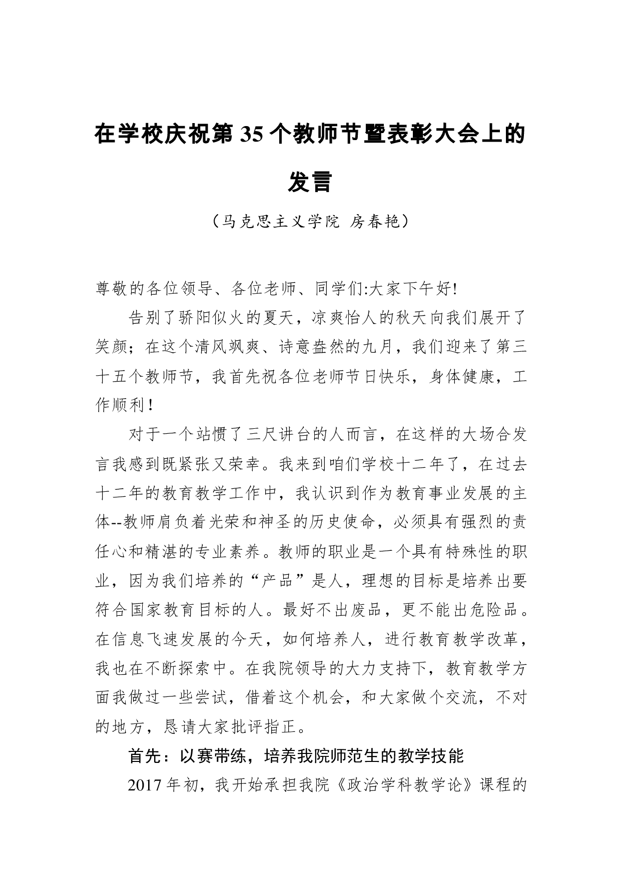 标题:房春艳:在学校庆祝第35个教师节暨表彰大会上的发言