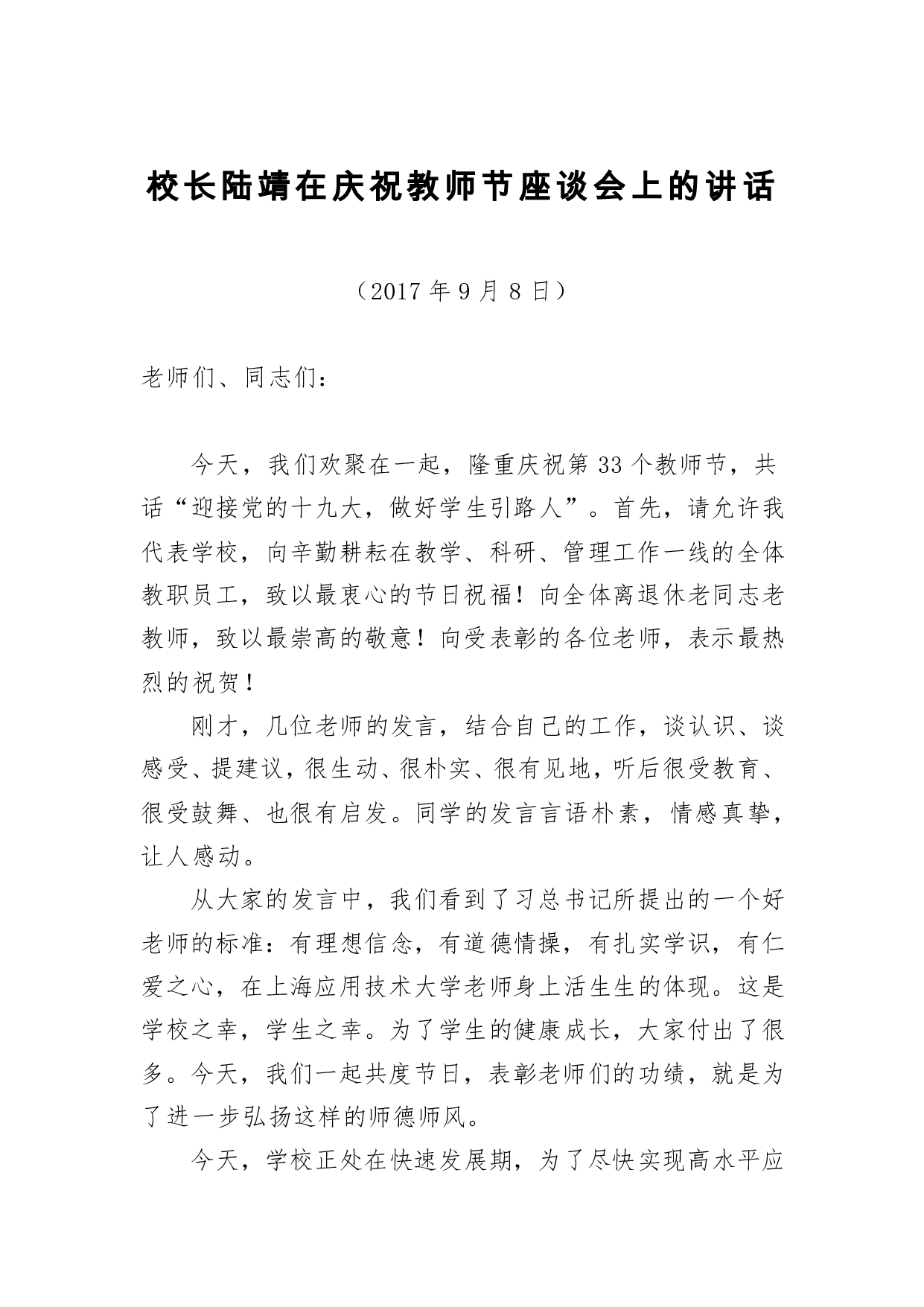 标题:教师节讲话:校长陆靖在庆祝教师节座谈会上的讲话