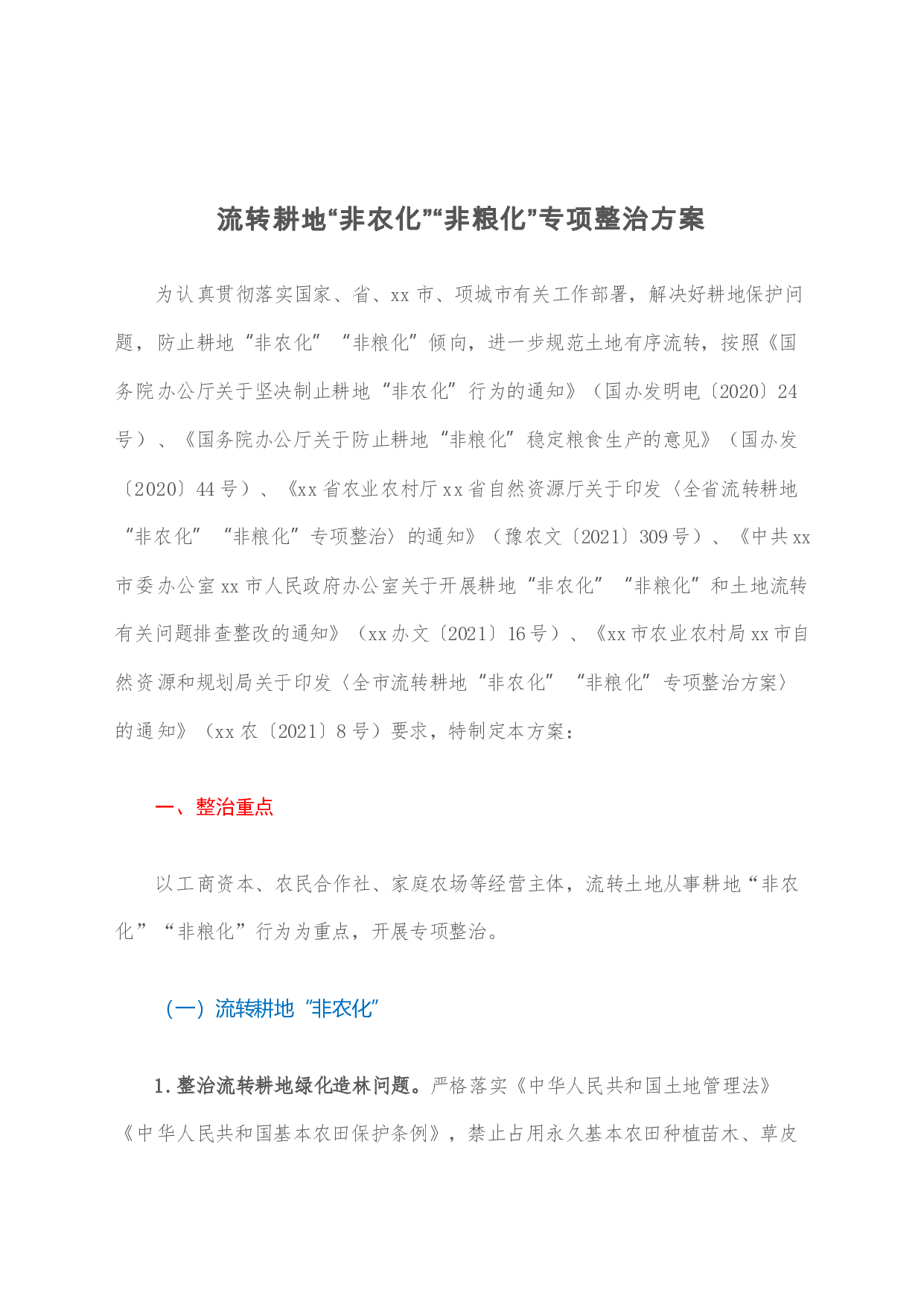 标题:流转耕地“非农化”“非粮化”专项整治方案