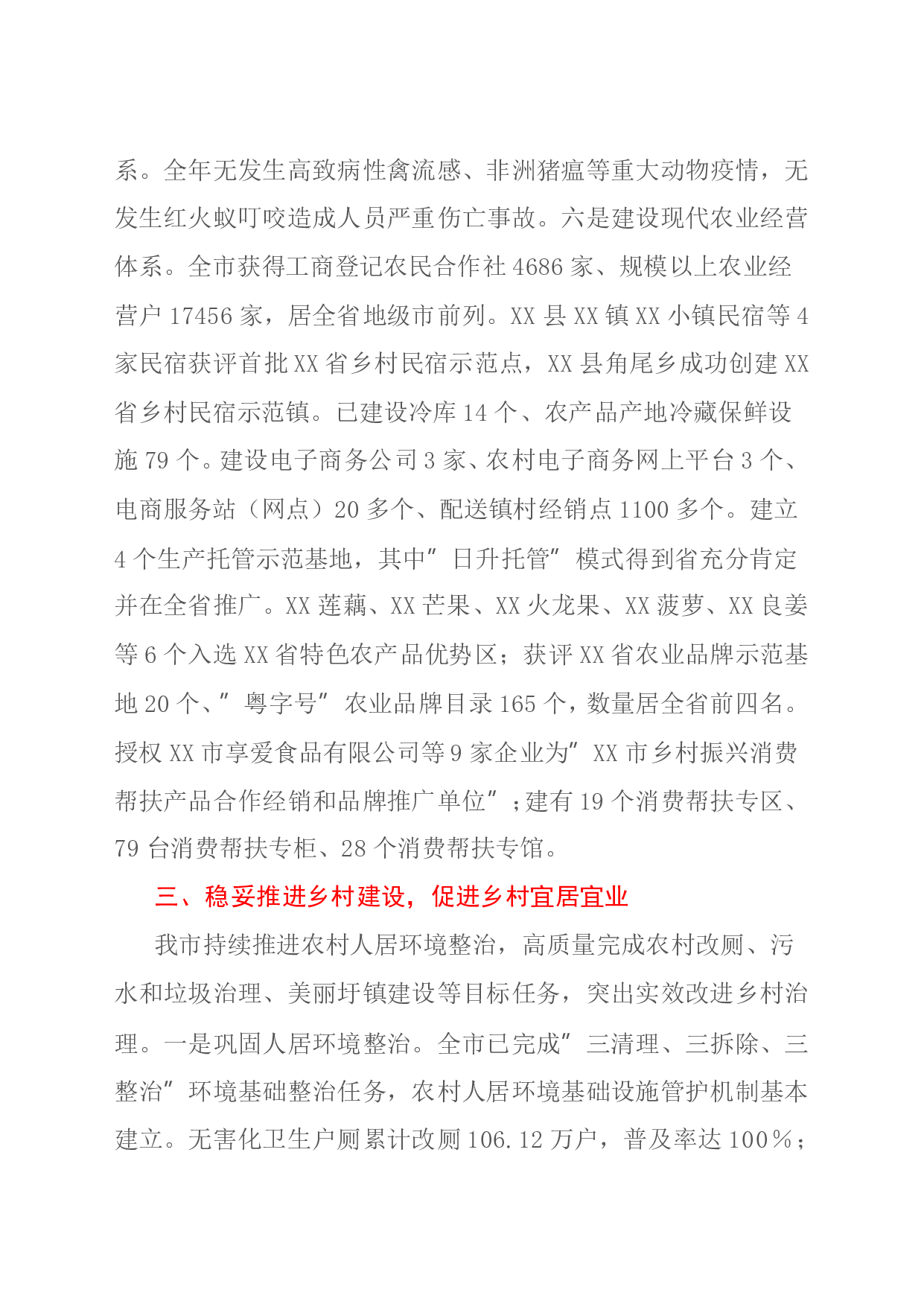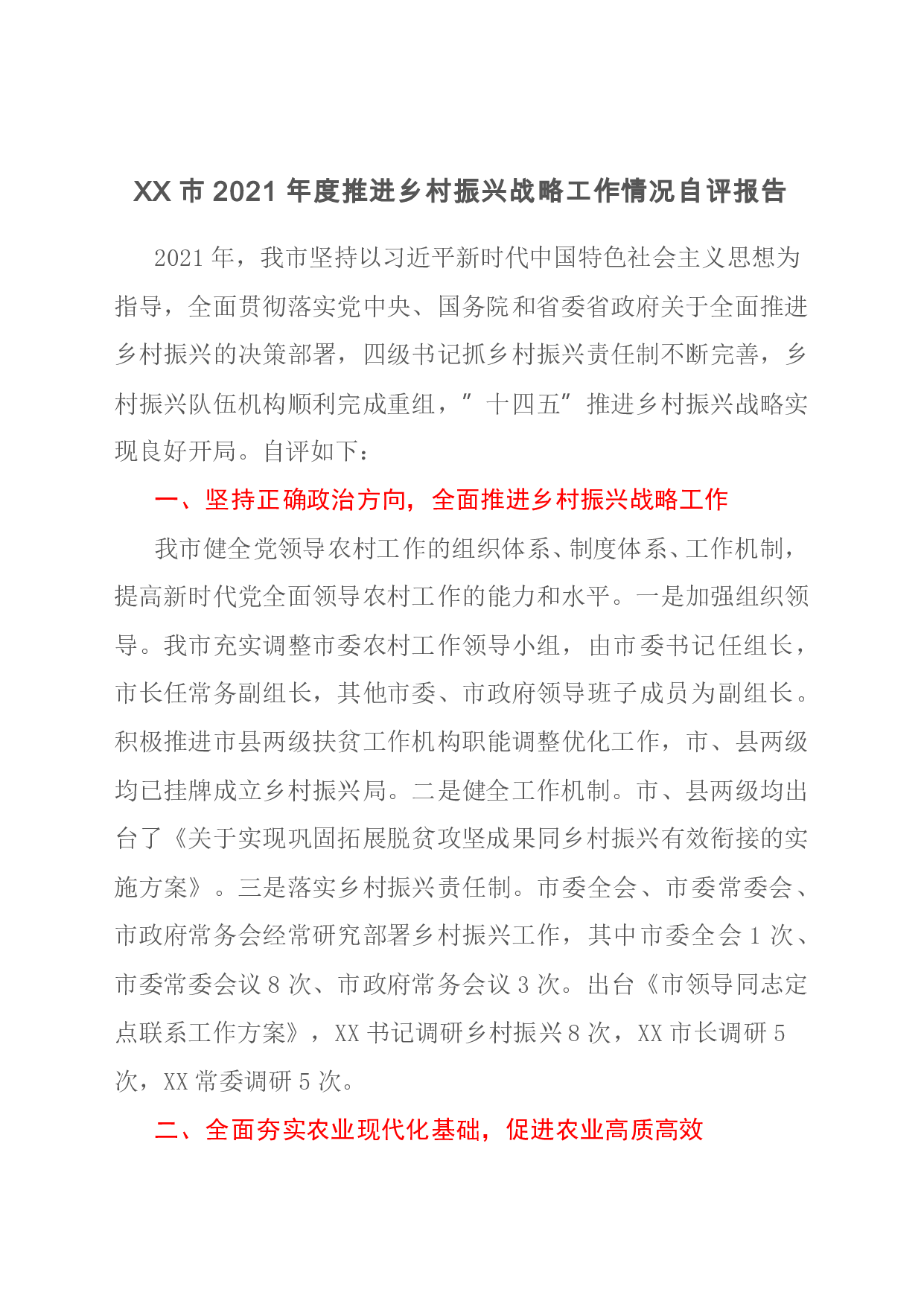 标题:XX市2021年度推进乡村振兴战略工作情况自评报告