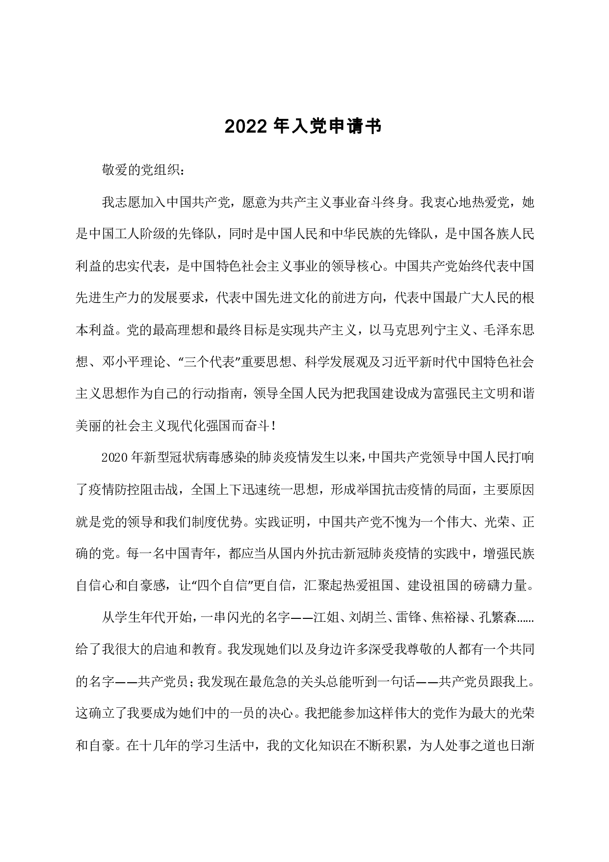 标题:2022年入党申请书