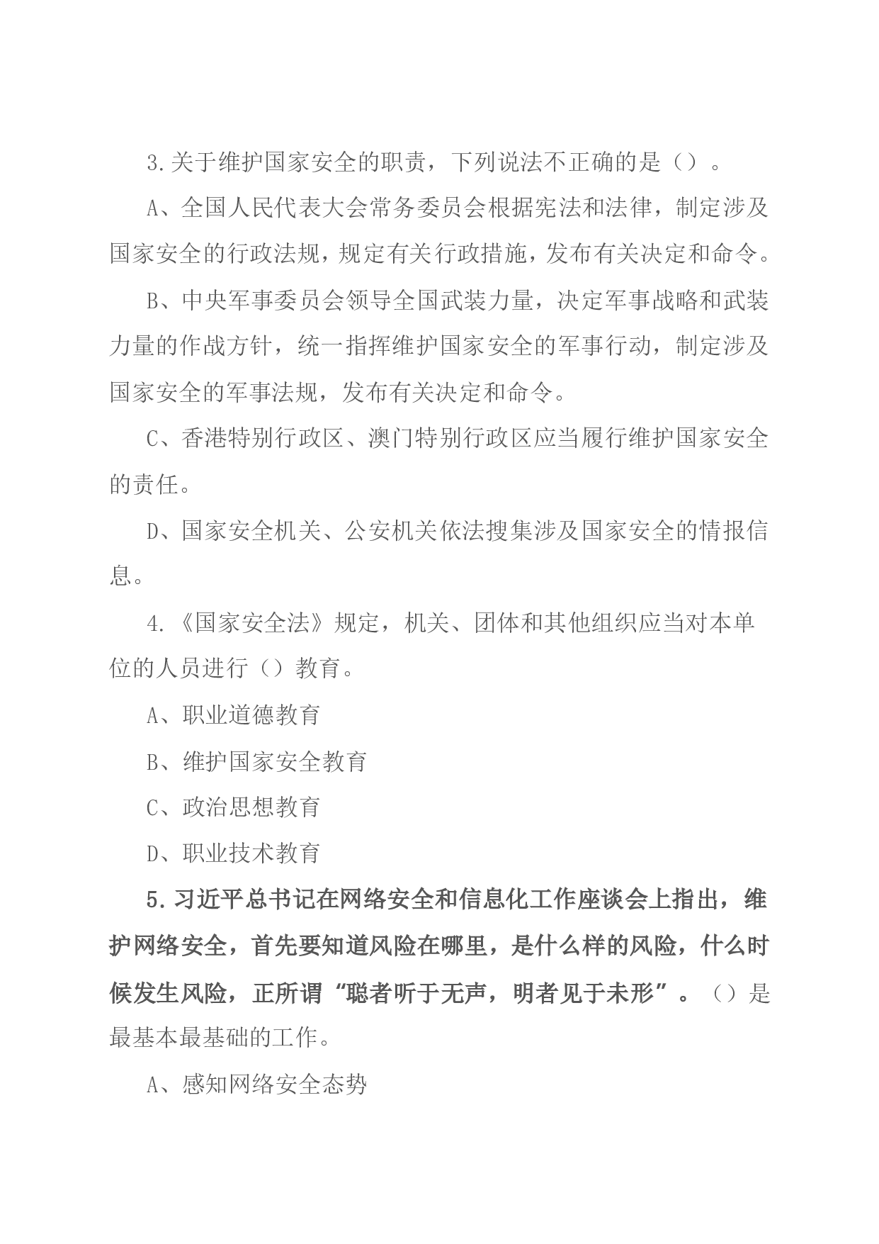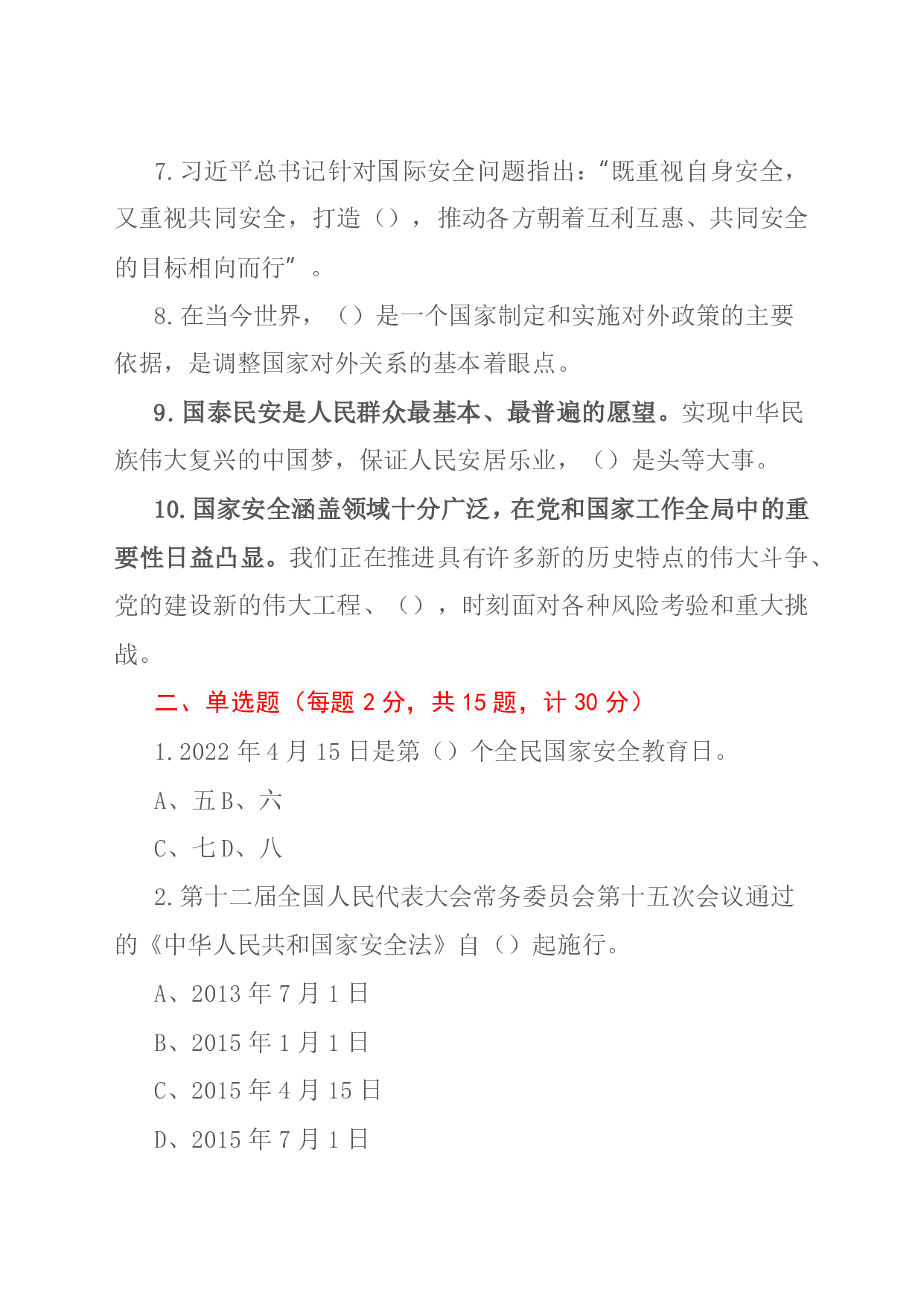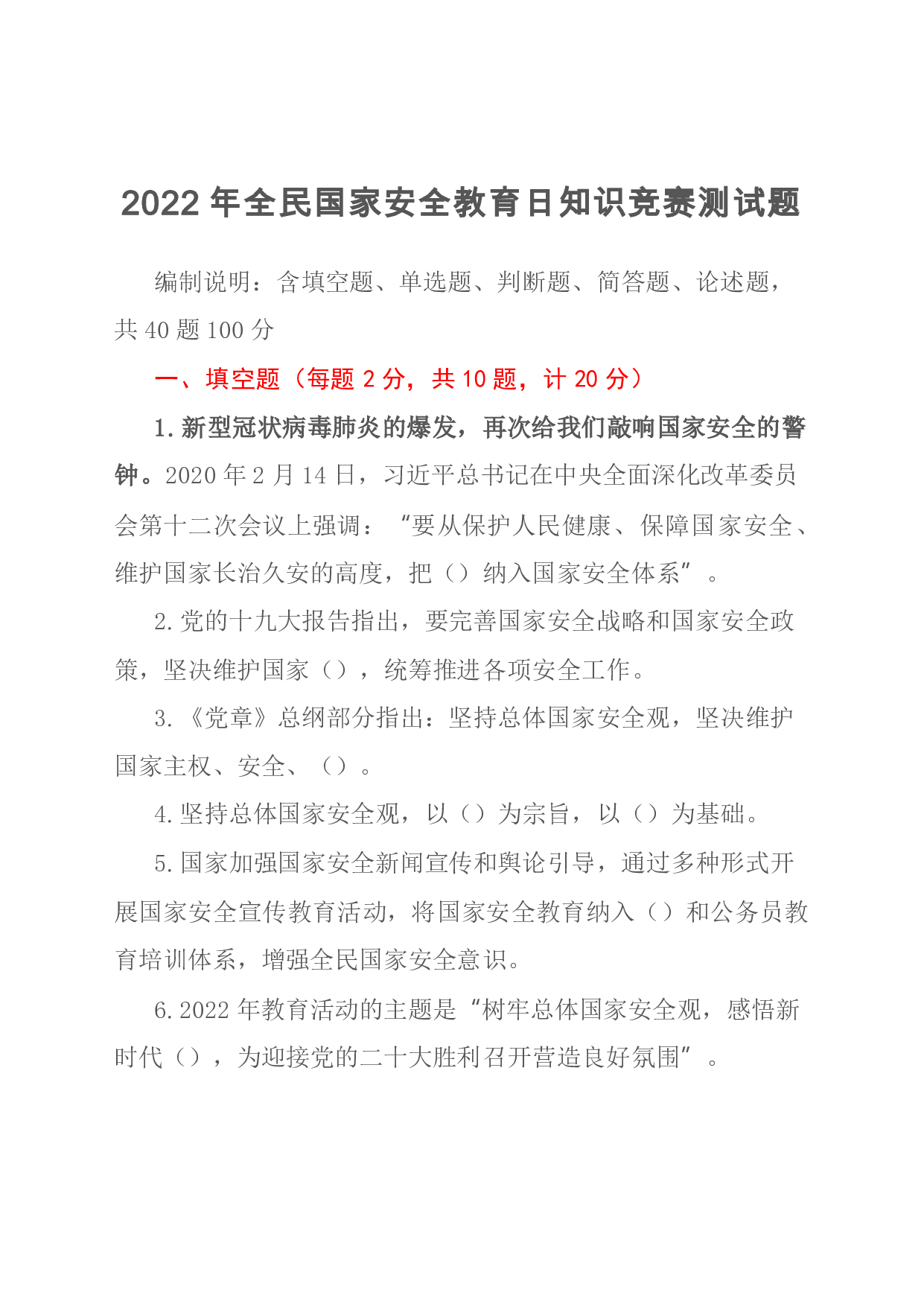 标题:2022年全民国家安全教育日知识竞赛测试题