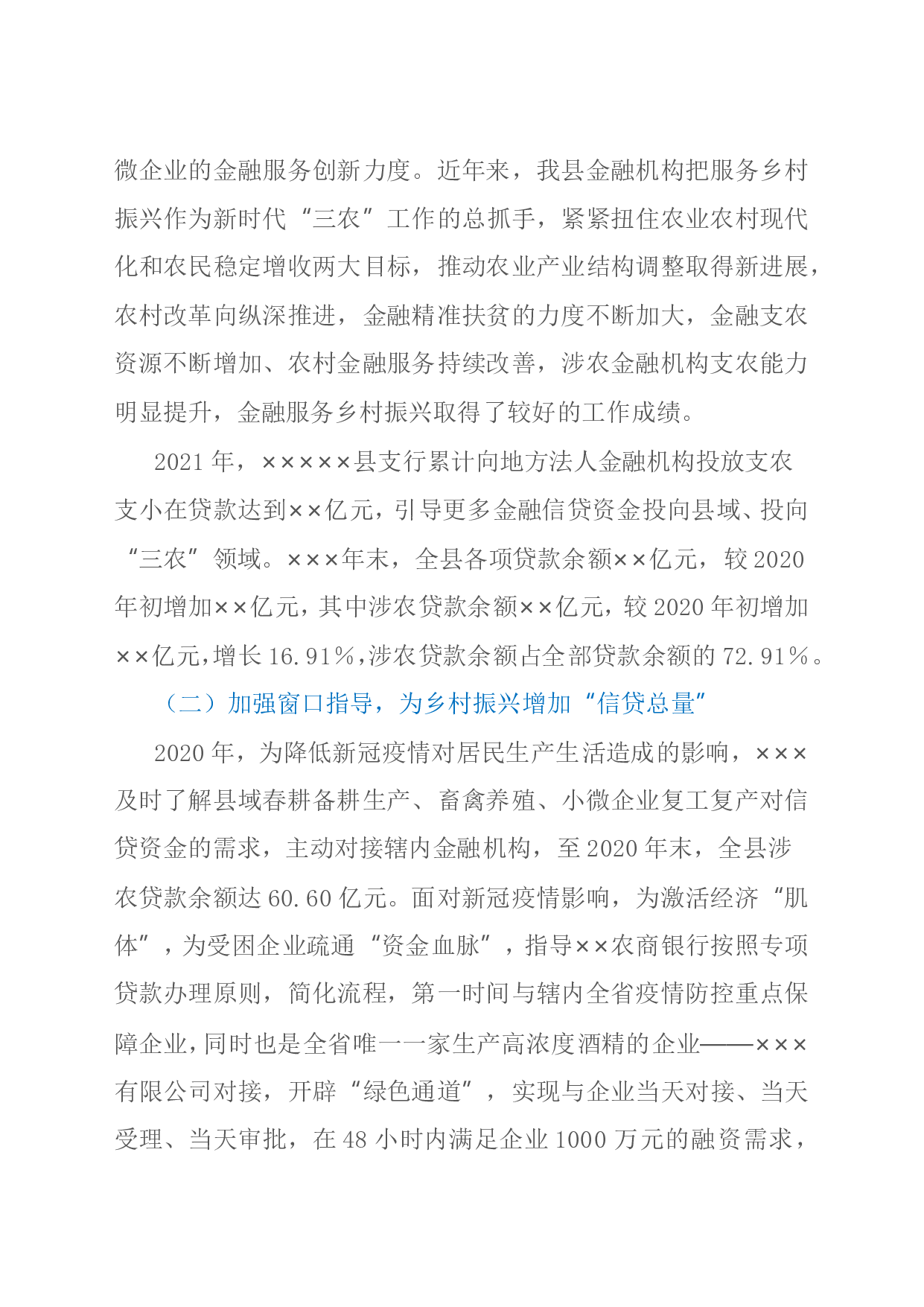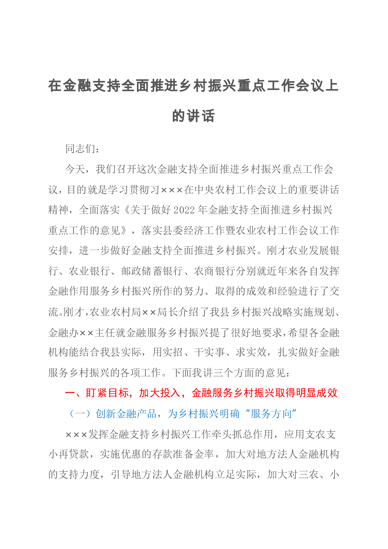 标题:在金融支持全面推进乡村振兴重点工作会议上的讲话