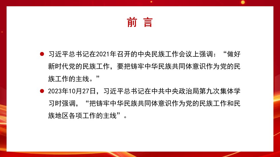 标题:铸牢中华民族共同体意识+做好新时代党的民族工作(PPT)