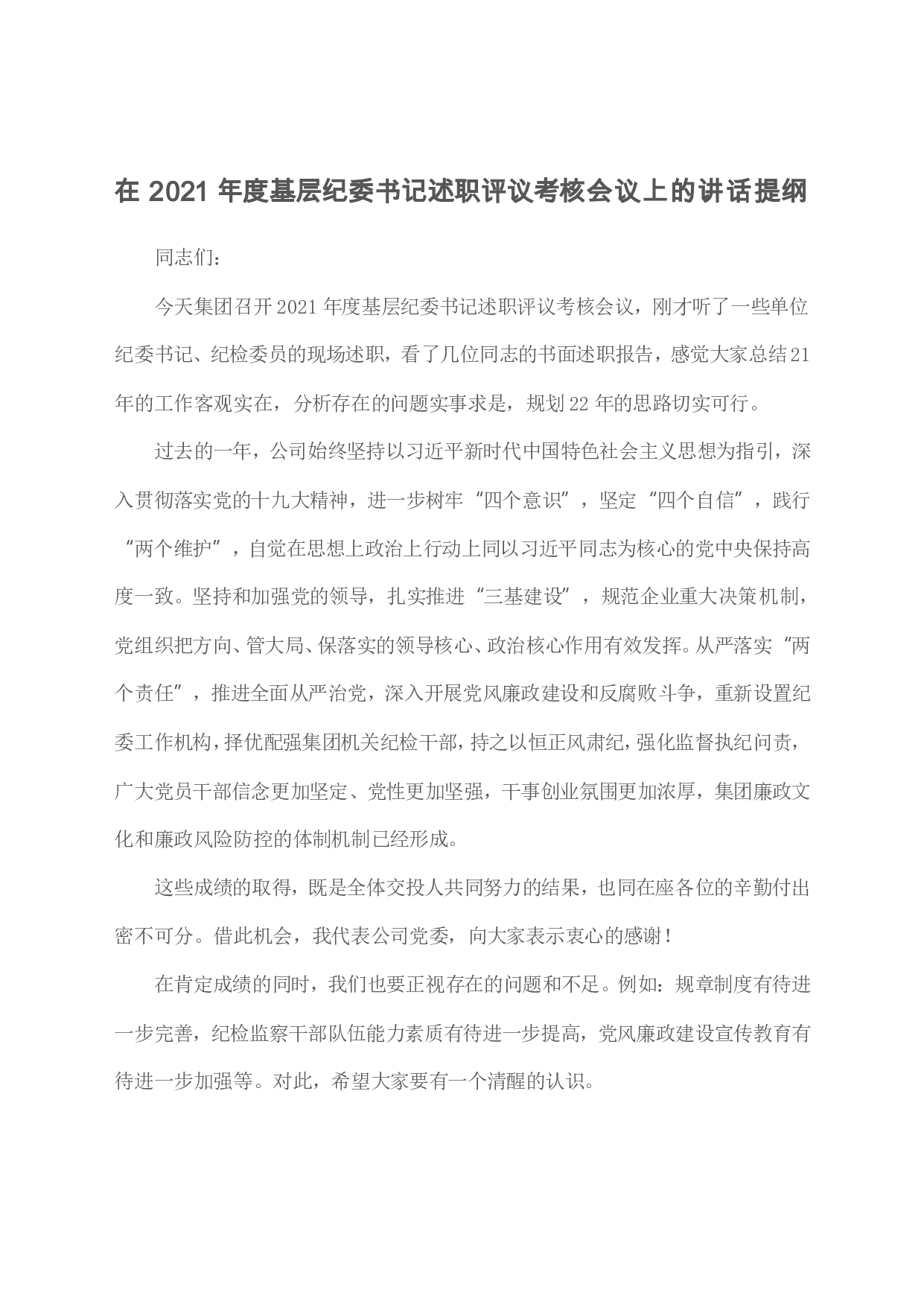 标题:在2021年度基层纪委书记述职评议考核会议上的讲话提纲