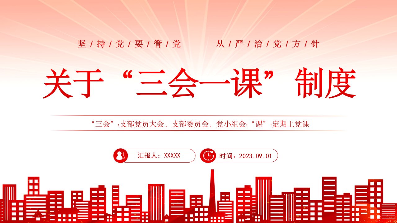 标题:关于三会一课制度 坚持党要管党从严治党方针专题党课课件PPT