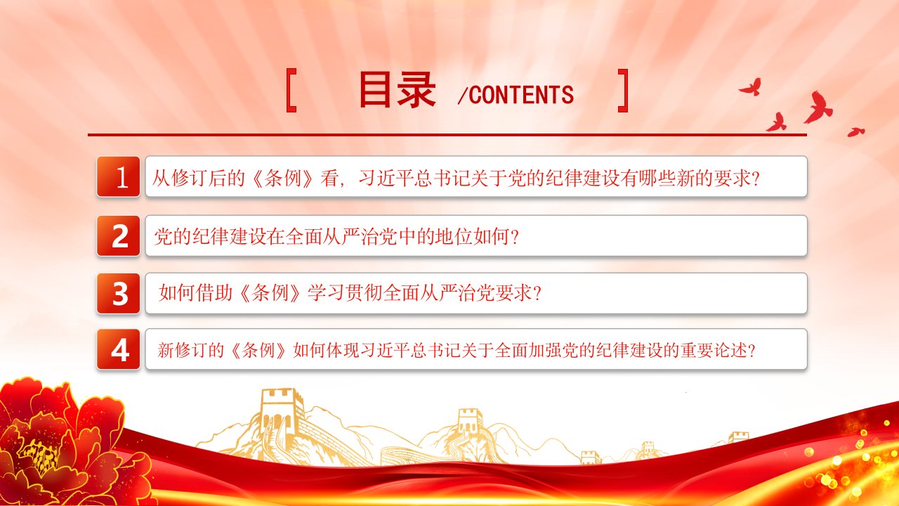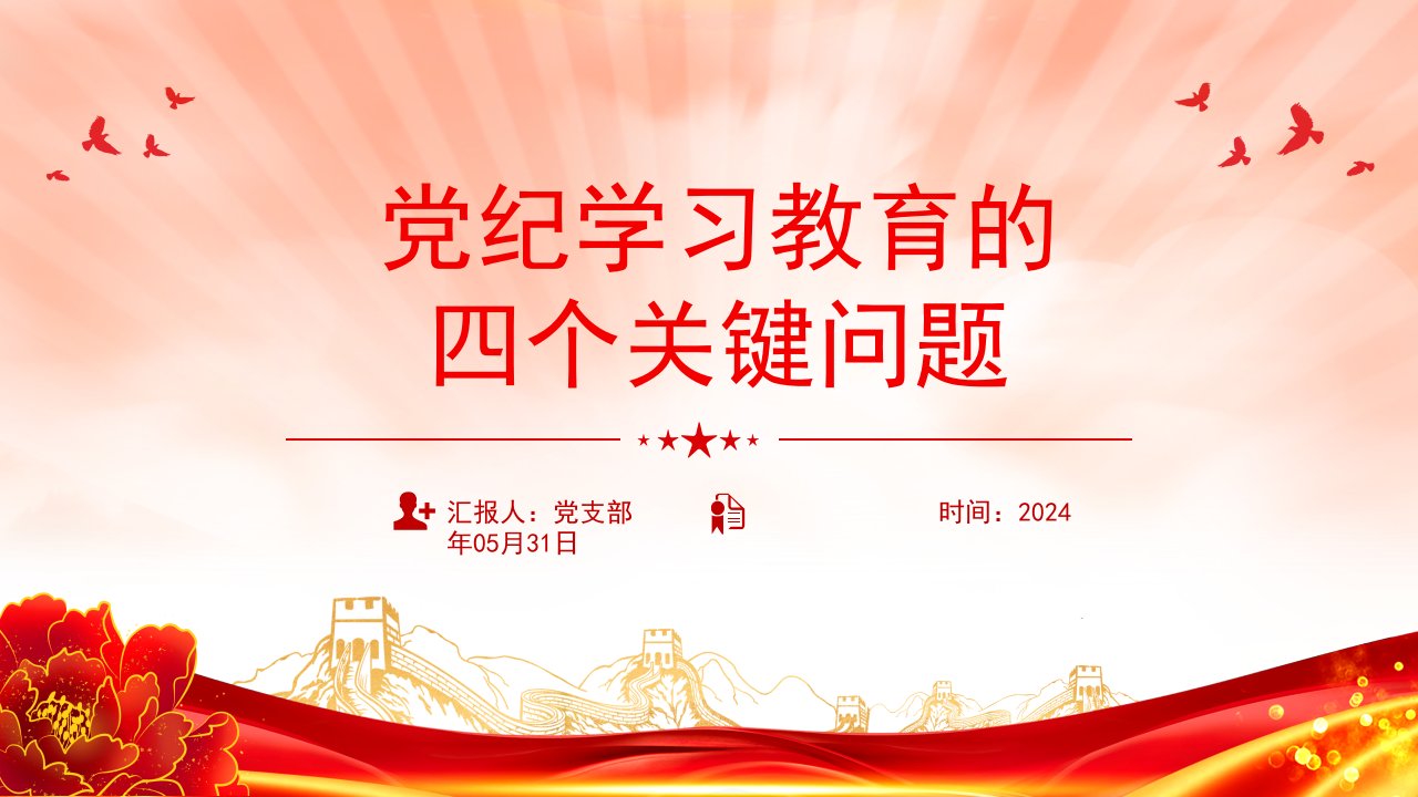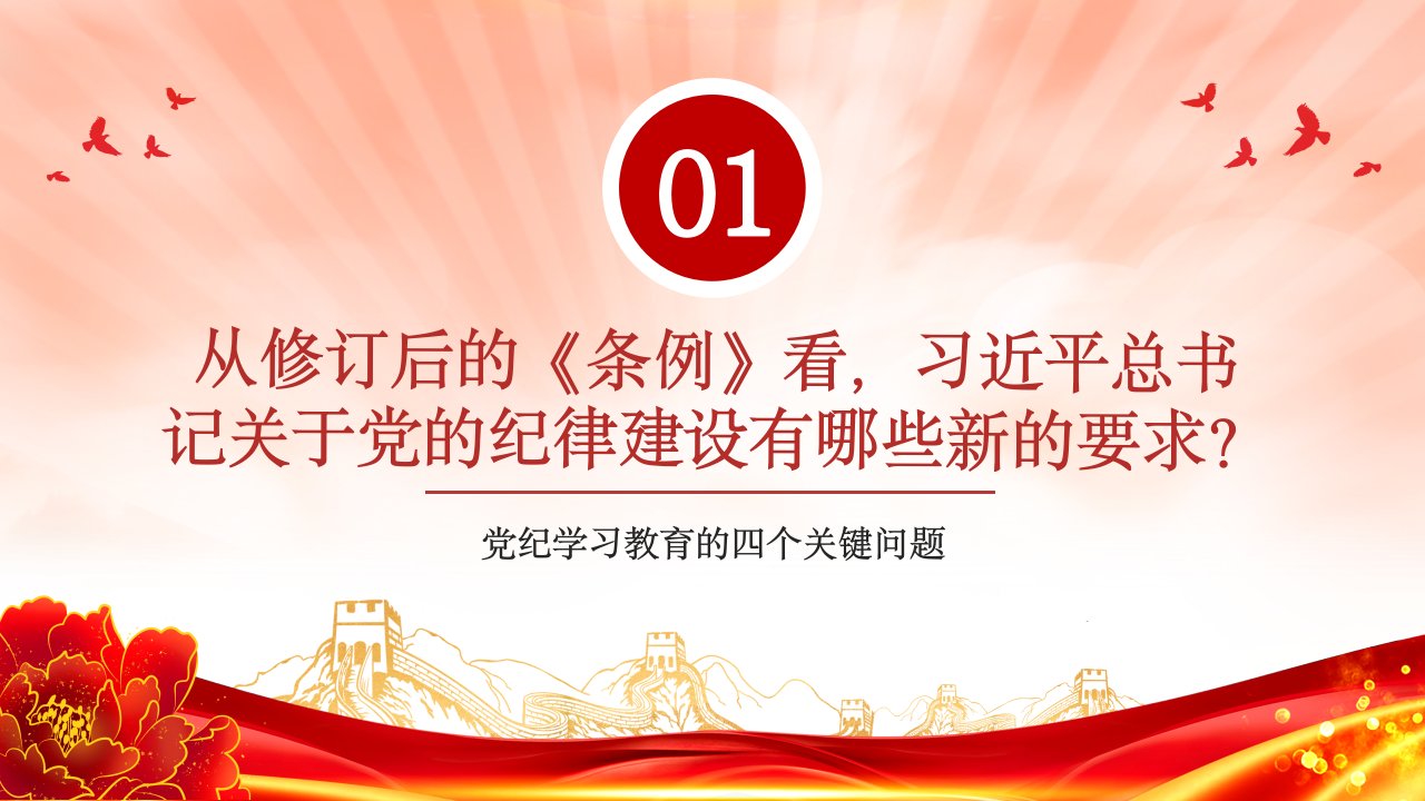 标题:党的纪律建设专题党课:党纪学习教育的四个关键问题PPT