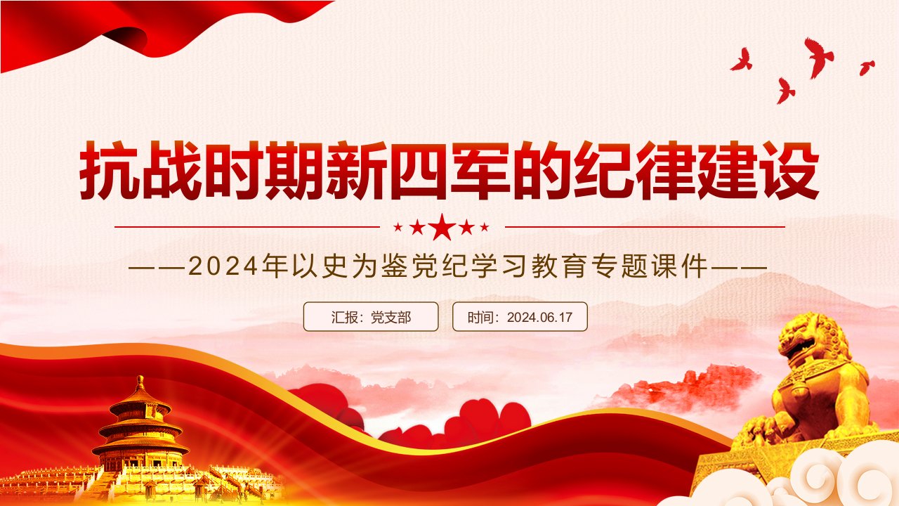 标题:以史为鉴党纪学习教育党课:抗战时期新四军的纪律建设PPT