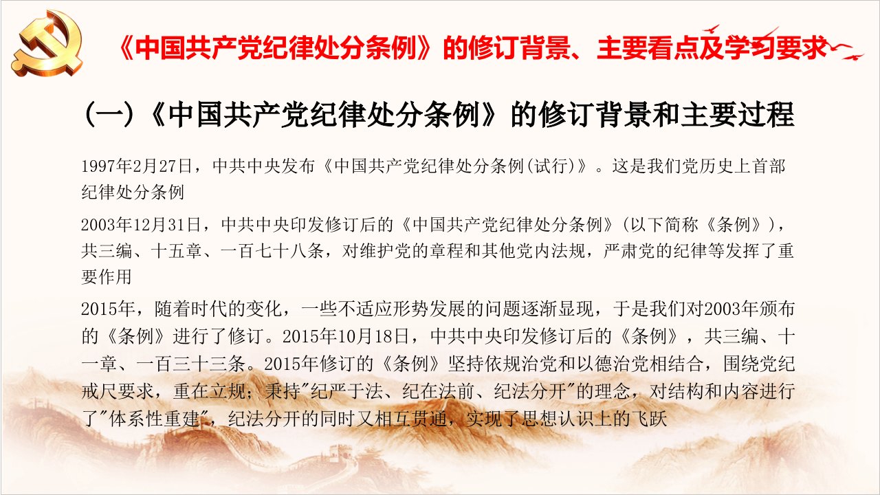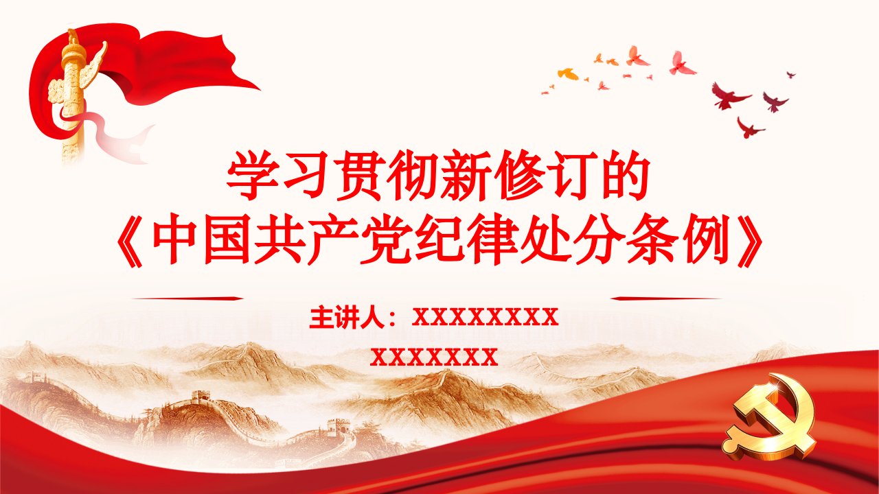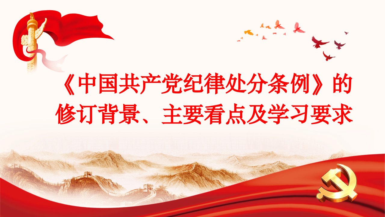 标题:党纪学习教育专题党课PPT-学习贯彻新修订的《中国共产党纪律处分条例》