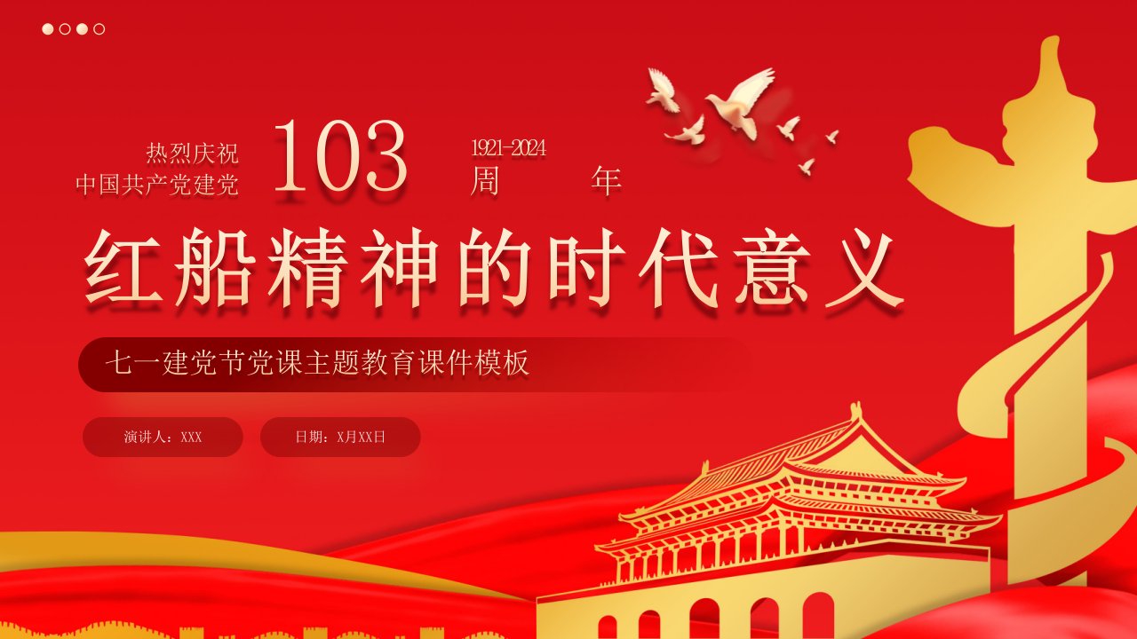 标题:红船精神的时代意义七一党课PPT模板
